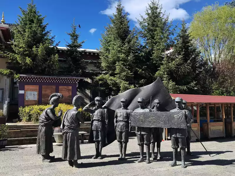 Diqing Red Army Long March Museum is located on the north side of Sun and Moon Square in Dukezong Ancient Town. The exhibition hall displays ships, guns, slogans, documents and books used by the Red Army, as well as lanterns, medicine boxes, grain bags, kettles and other daily necessities. There are also a large number of pictures introducing little-known stories of the Long March. In the summer of 1936, the Second Front Army of the Red Army passed through Zhongdian during the Long March. He Long and Xiao Ke visited Songzanlin Monastery, met with the Living Buddha and lamas, and presented a brocade scroll with the inscription "Prosperity of the Tribes." Songzanlin Monastery opened its granaries to collect over 20,000 kilograms of grain for the Red Army and sent monks to serve as guides, supporting the Red Army's march north to fight against the Japanese. This glorious chapter has gone down in the annals of revolutionary history.