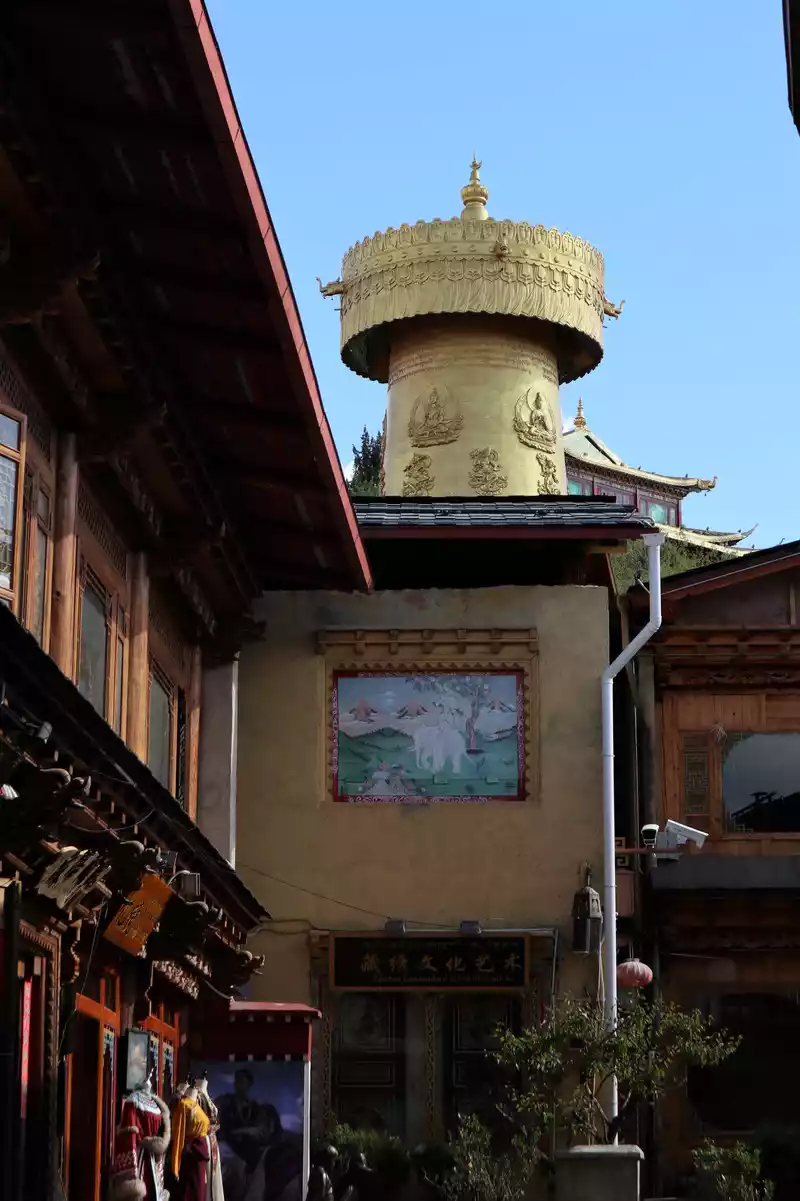 On January 11, 2014, Dukezong Ancient City suffered a sudden fire, causing huge losses. Many buildings in the ancient city were rebuilt after the disaster. I really wanted to see the famous prayer wheel, and get as close as possible, but after walking halfway around Turtle Mountain, I couldn't find a suitable spot. I didn't want to climb the mountain either, as there are supposedly over a hundred steps, and going up and down would take too long, and I couldn't keep the driver waiting too long.