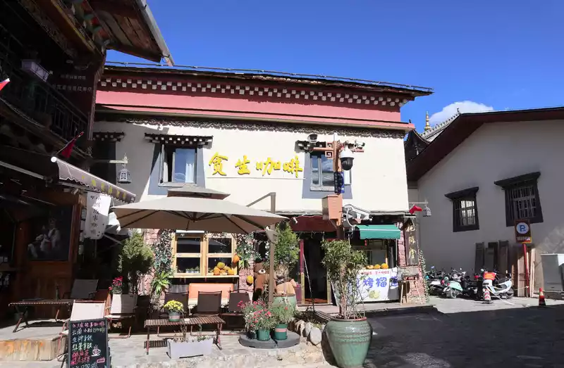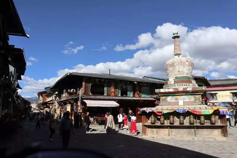 A white pagoda. It is said that the famous Tibetan restaurants in Shangri-La are all gathered near the white pagoda in the ancient city. I wonder if this is Sifang Street?