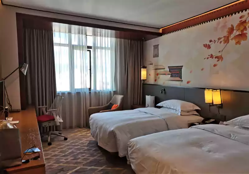 The hotel service is satisfactory. I asked for a quiet room at the front desk and I got it. The buildings outside the window are a bit dense, but the scenery in the distance is beautiful, with rolling hills, blue sky and white clouds.