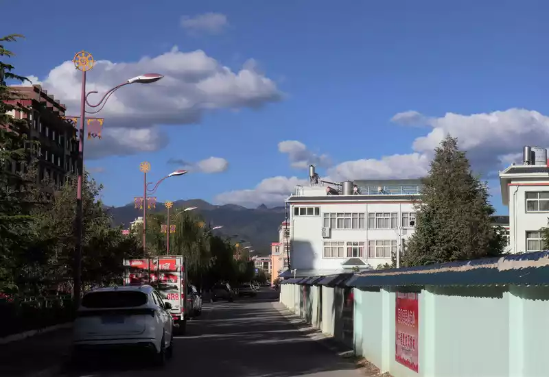 After leaving Songzanlin Temple, we wanted to visit Dukezong Ancient Town. The driver looked hesitant, implying we didn't have enough time. However, seeing we were determined, he still took us there. Actually, it was only 4:37 PM, and the ancient town is located in the city, only 6 kilometers away from Songzanlin Temple, so it wouldn't take long.