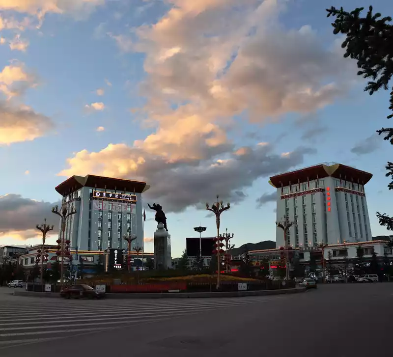 The two buildings are both hotels, one is Yunmeng Bay and the other is Vienna. Shangri-La, a small plateau city, has become a place where tourists from all over the world come to seek their dreams of paradise.