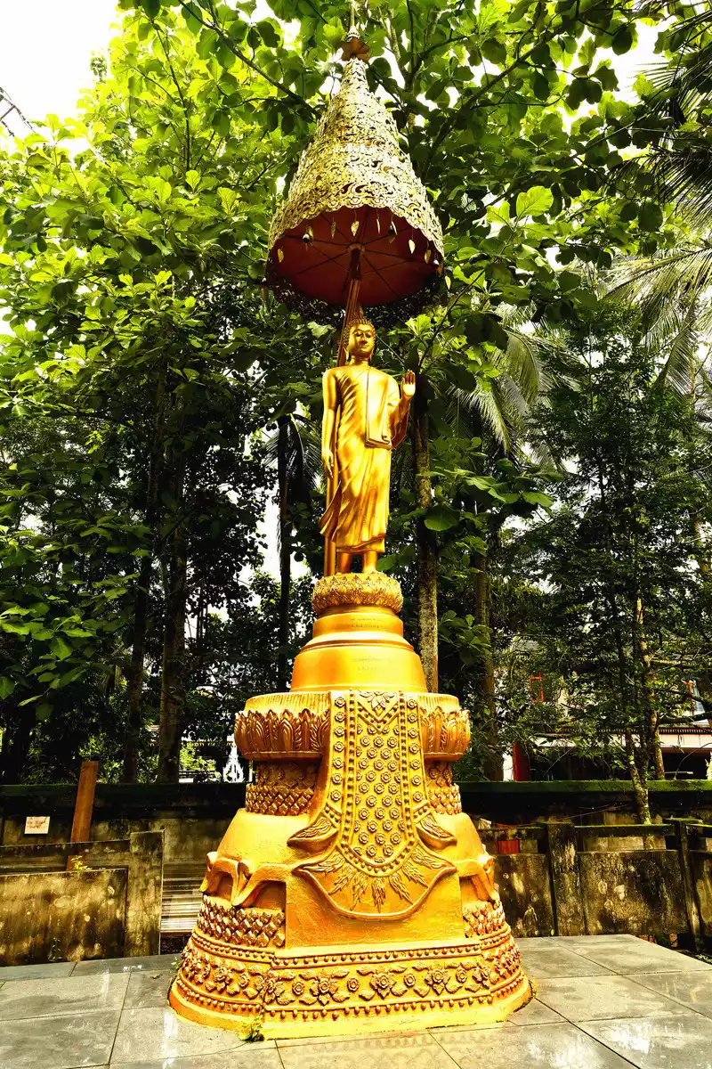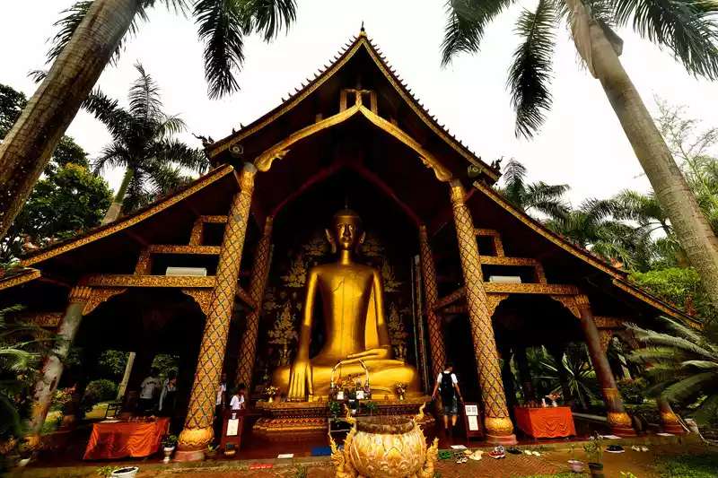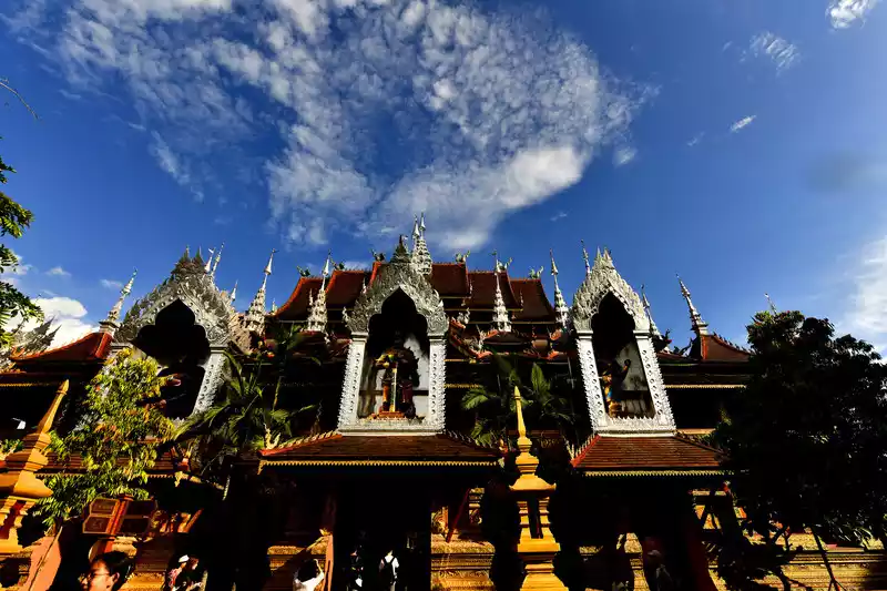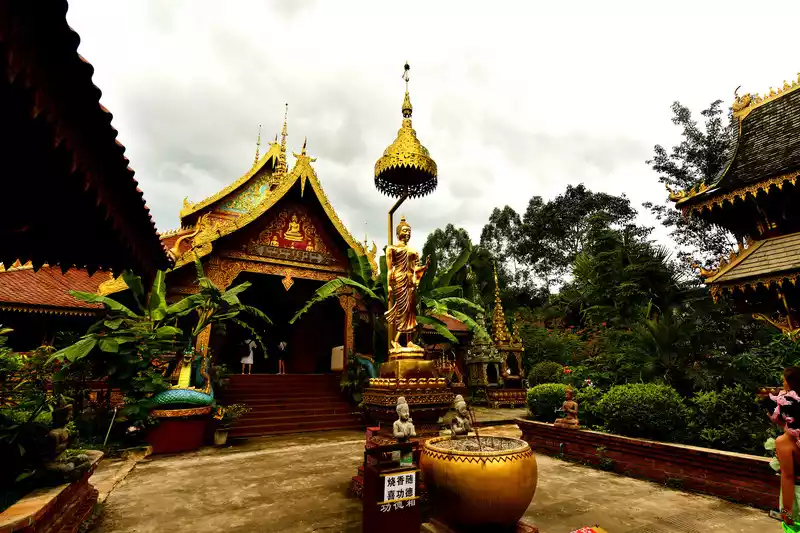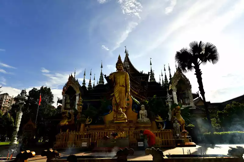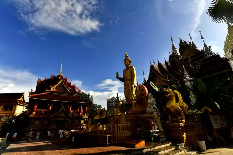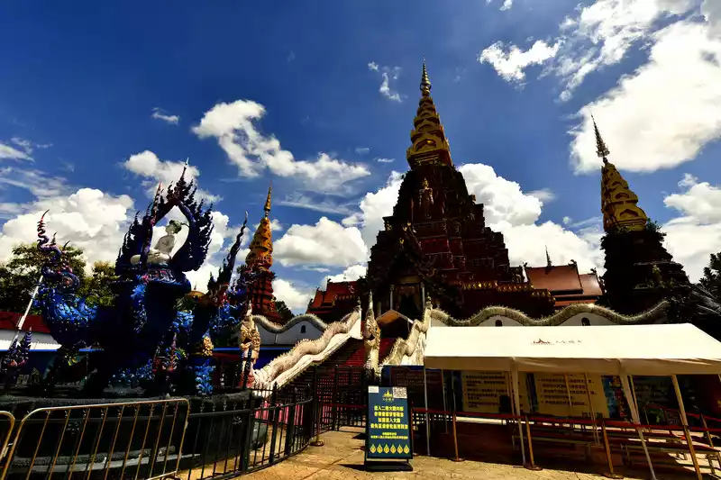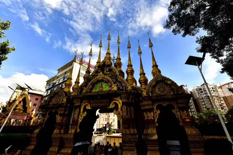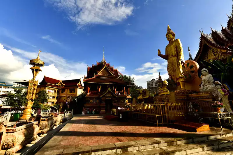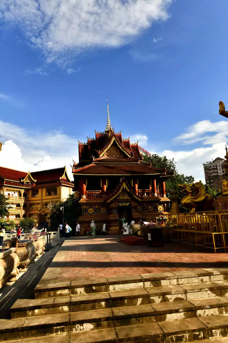 In the center of the Buddhist temple, there is a huge golden statue of Buddha Shakyamuni, with his eyes closed, his left hand downwards and his right hand raised upwards, accepting the worship of good men and women from all corners of the world. Here, you can feel the charm of Theravada Buddhism, appreciate the buildings and statues that are different from those in the mainland temples, and let your soul be purified, baptized and sublimated.