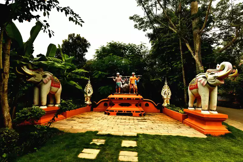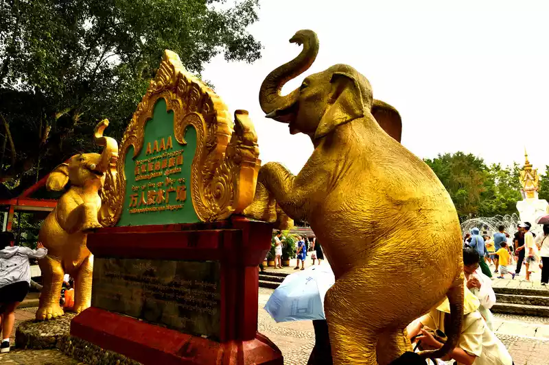 When you enter the gate of the scenic area, the first thing you see is the welcoming square, where sometimes enthusiastic Dai people will perform welcoming dances, sing blessings, sprinkle water for blessings, etc. As the Dai Garden is quite large, it is recommended to buy a package ticket that includes a sightseeing bus, which can save time and allow you to see more attractions.