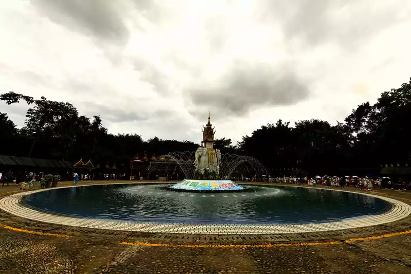 The tower is 66.6 meters high, implying that one river connects six countries. The four small towers are solid towers, and the big tower is a museum of palm leaf scriptures. It has two floors of usable space and four entrances in the east, west, south and north. There are prayer Buddhas enshrined around the central tower column for tourists to pray. Here you can experience Buddhist culture.
