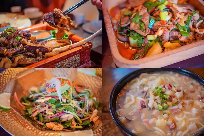 Potala Wooden House Tibetan Restaurant is a Tibetan restaurant located at the intersection of Niangre Road and Tibetan Hospital in Chengguan District, Lhasa. It specializes in Tibetan cuisine. Here, you can admire the traditional Tibetan wooden building architecture and enjoy authentic Tibetan cuisine such as barley wine, butter tea, tsampa, and yak beef. The restaurant also offers a variety of Tibetan drinks and snacks, as well as a variety of seasonal vegetables and fruits. For those interested in Tibetan culture, the restaurant also features folk song and dance performances and handicraft displays, allowing you to gain a deeper understanding of Tibetan culture.