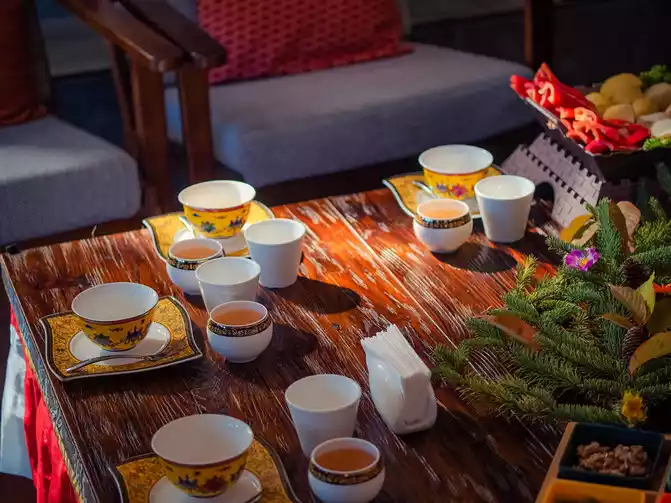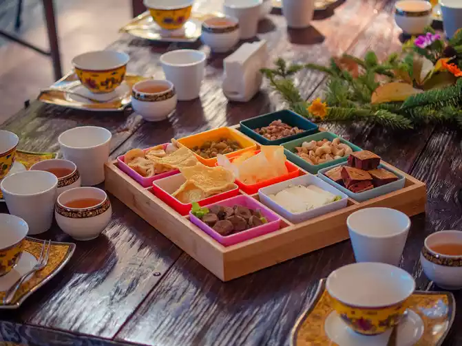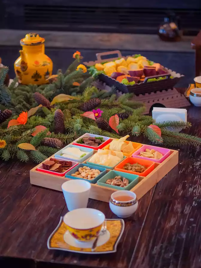 This time I specially experienced Tibetan-style afternoon tea at Gaoshan Villa. It combines the fusion and innovation of traditional Tibetan cuisine and Western-style afternoon tea. It includes traditional flavors such as Tibetan butter tea, tsampa, and Tibetan milk tea, as well as classic afternoon tea delicacies such as Western-style rose milk tea, sandwiches, scones, and nuts, bringing a unique gourmet experience.