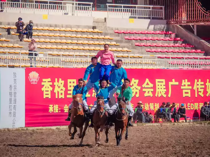 Looking forward to returning here again and continuing to explore the mystery and charm of this ancient city. To celebrate the "Shangri-La" World Cultural Tourism Festival, the local government held a grand Golden Autumn Horse Racing Festival at the Shangri-La National Sports Center Gymnasium. The event attracted a large number of tourists and local residents, who witnessed this exciting moment together. More than a hundred athletes from Inner Mongolia, Sichuan, Kunming, Dali Prefecture, Lijiang City and other prefectures galloped on their horses across the racecourse, presenting a visual feast of speed and passion, equestrian skills and heroic posture to the audience. Before the competition began, outstanding riders from the local equestrian club showcased their superb equestrian skills. Their coordinated performance with their horses showcased a series of stunning equestrian maneuvers. Whether challenging jumps or graceful strides, their performances drew applause from the audience. The equestrian demonstrations also featured numerous female riders, demonstrating the strength and courage of women and further promoting the development of local equestrianism.