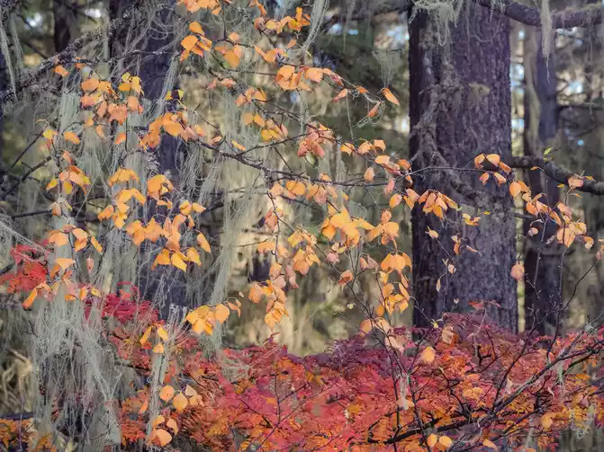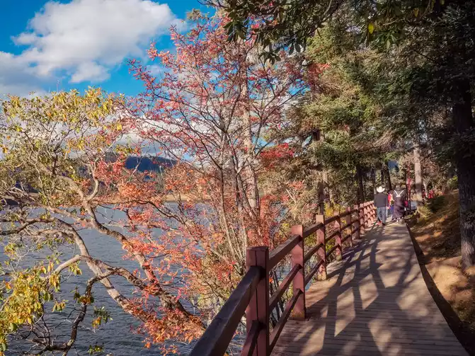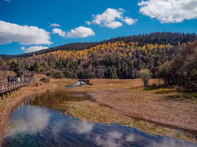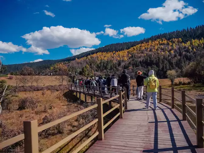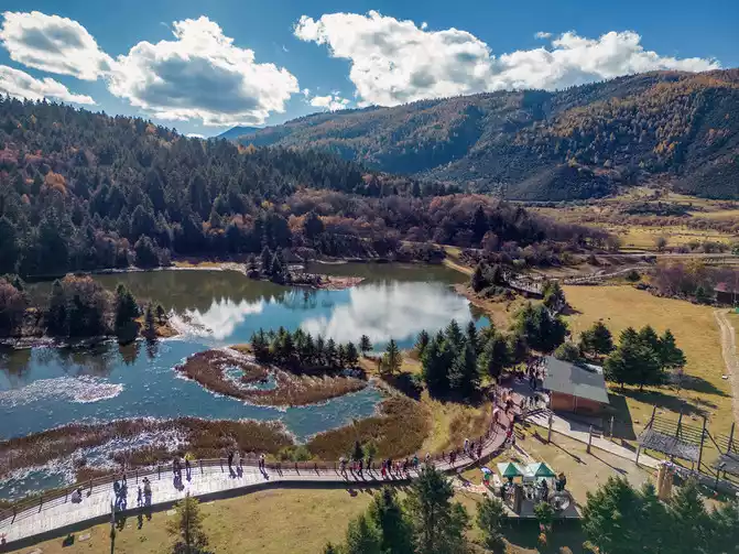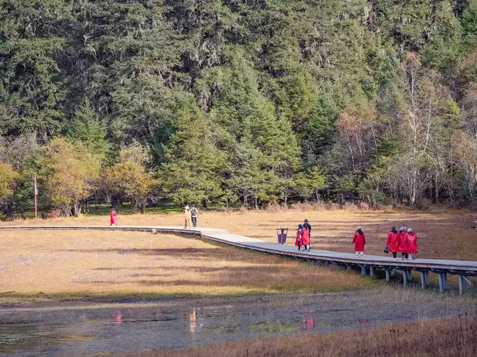 Walking along the winding plank road, birds fly happily among the trees, chirping from time to time. These free creatures add infinite vitality to Pudacuo in autumn.