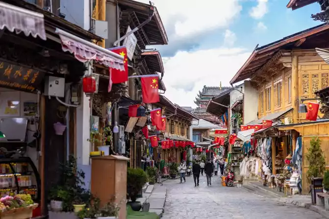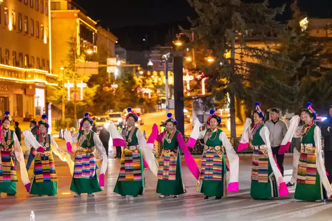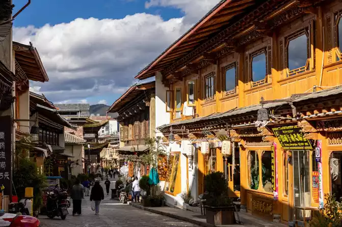 Moonlight City, Dukezong Ancient TownShangri-La's Moonlight City, Dukezong, a millennium-traveling ancient town recommended by China National Geographic, is known as the "sun and moon in one's heart." The name Dukezong comes from the Tang Dynasty Tubo Dynasty, which established a fort here and named it Dukezong. The Tibetan language means "Moonlight City" or "Castle built on stone," a poetic phrase. This ancient city, dating back over 1,300 years, was once a key point on the Tea-Horse Road. Even today, horse hoofprints can still be seen on the stone pavements, relics left by the caravans of long ago. Following these hoofprints, walk along the quiet stone pavements and listen to the echoes of the ancient city's rich history. The architectural layout of the ancient city resembles an eight-petaled lotus flower, with Moonlight Square at its center and quaint Tibetan wooden houses surrounding it. This is the best-preserved and largest Tibetan residential complex in China, once serving as a gateway for cultural exchange between the Tibetan Plateau and Yunnan, and a nexus for economic and trade between the Sichuan-Tibet-Yunnan region. The devastating fire in Dukuzong on January 11, 2014, reduced many Tibetan residences to ruins. However, wandering through the area, one can still discern the ancient city's former splendor. Most of the houses in the ancient city have been converted into inns, restaurants and shops. The shops sell local specialties such as Tibetan knives, yak meat, Tibetan jewelry, etc. The restaurants mainly serve Sichuan and Tibetan cuisine, with yak beef hot pot, butter tea and a wide variety of local specialties. There are monks holding Buddhist beads and girls wearing Tibetan costumes taking photos.