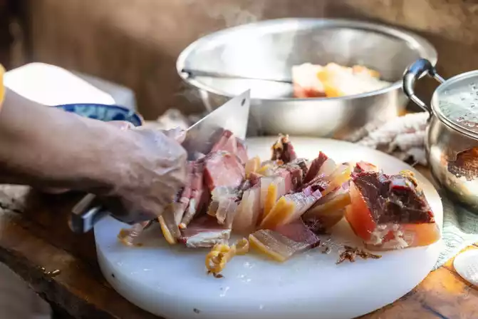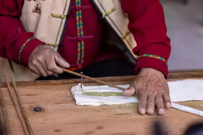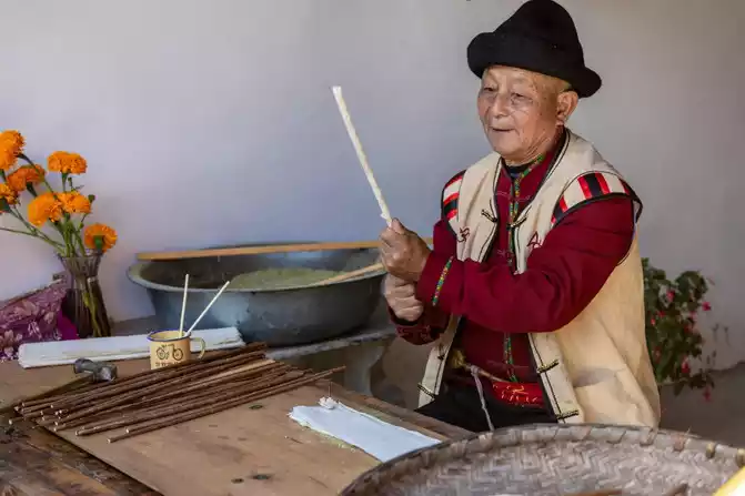 Watch the Naxi uncle rolling incense, make glutinous rice cakes with the grandmother, and have lunch with local bacon, blood sausage, stewed chicken soup, and wild mushrooms... The warm sun makes you feel warm. Cheers to the magical land of Yunnan with a glass of high-proof barley wine.