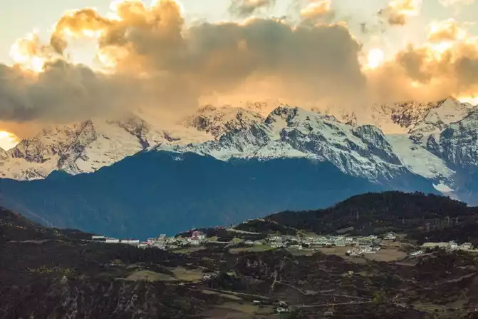 Spend three days walking the Shangri-La Three Parallel Rivers Loop. In 2003, the Three Parallel Rivers in the Hengduan Mountains of northwestern Yunnan were inscribed on the UNESCO World Heritage List. As you journey toward the Meili Snow Mountain, you'll experience the ruggedness of the dry and hot river valley, the beauty of the Lancang River, and the vibrant energy of the Baima Snow Mountain. It's in this transformation that you'll appreciate China's vastness and the magical charm of the plateau. The winding mountain roads and the majestic First Bend of the Lancang River add a touch of awe to this pilgrimage. More than 40 million years ago, the Indian subcontinent collided with the Eurasian plate, creating an alternating pattern of towering mountains and mighty rivers, forming the unique Jinsha, Lancang, Nu, and Dulong rivers, which flow parallel but never converge. The 170-kilometer-long natural wonder, with majestic snow-capped peaks, treacherous canyons and rapids, and beautiful forests and snowfields, has created a world of rich geology, biology, and climate, forming a canyon complex rarely seen in the world. Under the influence of flowing water and the earth, a unique vertical climate has been formed. The river valley is dry and hot, the mountains are lush and green, and the tops are covered with ice and snow. This is the vertical climate of the Three Parallel Rivers area. We arrived in Weixi at noon on the first day. Tacheng Town is like a paradise, located in the lush valley of the lower reaches of the Lapu River, a tributary of the Jinsha River. Houses of various ethnic groups are scattered among the fertile farmland. Eight ethnic groups, including Tibetan, Naxi, Lisu, Han, Yi, Bai, Pumi, and Hui, live together in harmony and prosper together on this quiet land.