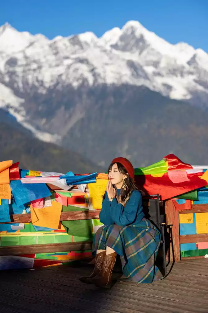 The scenery along the way was breathtaking, with snow-capped mountains above and canyons below. We encountered the sky-high realm of Napahai, and the mist-shrouded Songzanlin Temple seemed like a miracle. We walked through the autumn of Baima Snow Mountain and stayed in the mysterious Balagzon Mountains. In a land steeped in ethnic culture, I wake in the morning to the aroma of burning cypress leaves and fall asleep at night beneath a brilliant starry sky. Along the way, I encounter parched river valleys, majestic glaciers, vibrant forests, and the Tibetan people, whose lives are filled with joy. Mules, horses, and yaks leisurely emerge from the towering mountains. The Merika Wagebo, silently watching, silently observing everything, cloaked beneath the clouds, is an inseparable presence for all living things. The vast world, the mountains, rivers, lakes, and seas, every encounter in this world is a reunion with oneself. Because so many people say it's difficult to see the true beauty of Meili Snow Mountain, I had low expectations for my trip to Meili. It wasn't until I woke up in Deqin that all of the 13 peaks of Meili Snow Mountain appeared before my eyes. The sky was a deep blue, the air was crystal clear, and the mountains glowed, like a grand festival. The sudden surprise was completely unexpected. At the end of the year, I saw the golden peaks of Meili Snow Mountain in the sunlight. May good luck, health, and peace be with you.