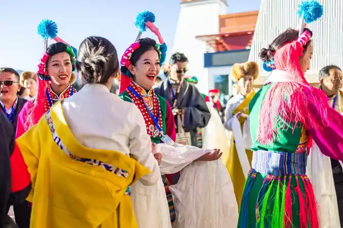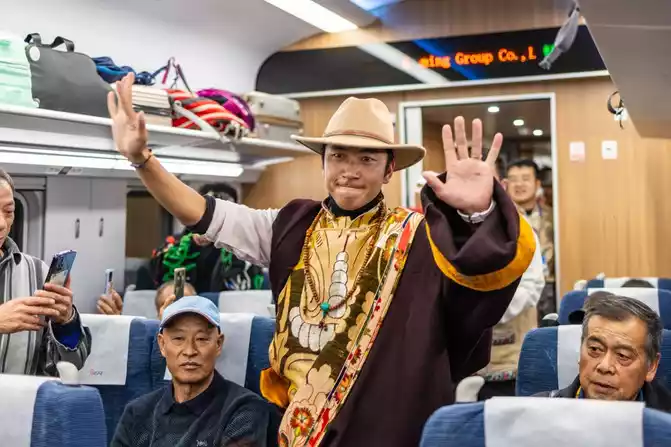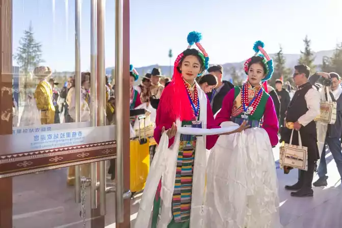 This is a passage from James Hilton's "Lost Horizon", which describes the flight scene when he landed in Shangri-La. The Shangri-La described in the book is like a paradise on earth, without worldly troubles, and time seems to stand still. As time went on, the mysterious Shangri-La, a city blessed by the sun and moon, finally gained access to high-speed rail! From then on, Shangri-La entered the era of the bullet train. What a joyful experience! I was honored to ride the first high-speed train from Lijiang to Shangri-La. The Tibetan people sang and danced on board, and upon exiting the station, they presented each passenger with a khata and souvenirs, including bags of barley flowers and Tibetan pear jelly. It was a truly Shangri-La experience, and their hospitality warmed everyone's heart. I love Shangri-La! The CR200J1-D Fuxing train we took was specially designed for the high-altitude, cold environment of the plateau: the window glass is UV-resistant, an electric heating system ensures the interior temperature, the seats are rotatable, and there is oxygen on board... Galloping towards the snowy plateau, the altitude climbs from 2,400m at Lijiang Station to 3,274m at Shangri-La Station. There are 13 stations in total, connecting many famous scenic spots such as Lijiang Old Town, Lashi Lake, Jade Dragon Snow Mountain, Tiger Leaping Gorge, Haba Snow Mountain, and Shangri-La, and passing through autonomous regions of ethnic minorities such as Tibetan, Yi, Bai, and Pumi... src="https://dimg04.c-ctrip.com/images/1mf2f12000cpqt3i5DF9A_W_671_0_Q90.jpg?proc=autoorient" />
