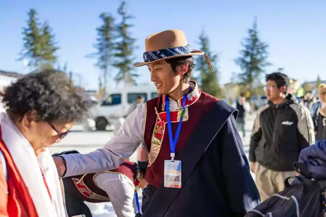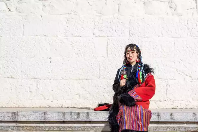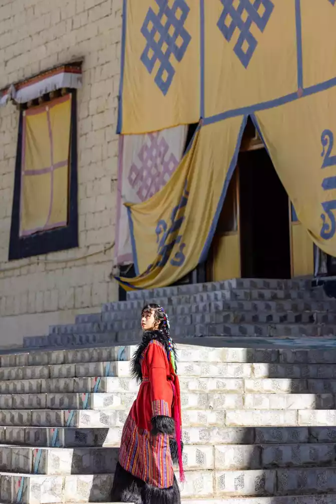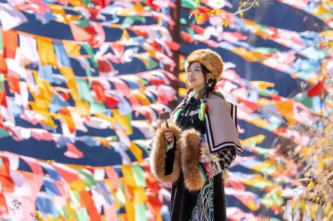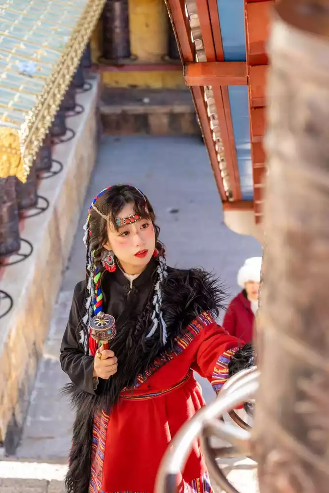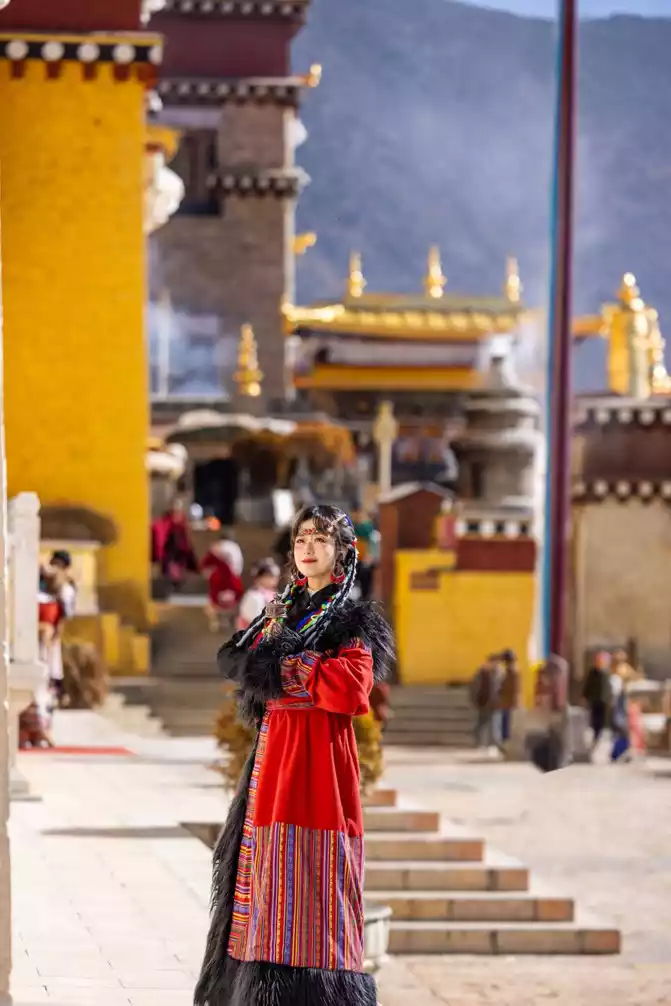 Admission: Adults 90 RMB. Tip: Wearing Tibetan clothing is essential for stunning photos here! The average price for a makeup and styling service in Shangri-La is 99 RMB, with a custom-made style including makeup and hair. There's no time limit. Compared to the dress-up shops in Dukezong Ancient Town, the clothing is more attractive and varied. We recommend dressing up first and heading to Dukezong before heading to Songzanlin Temple.