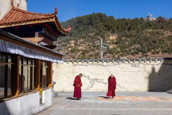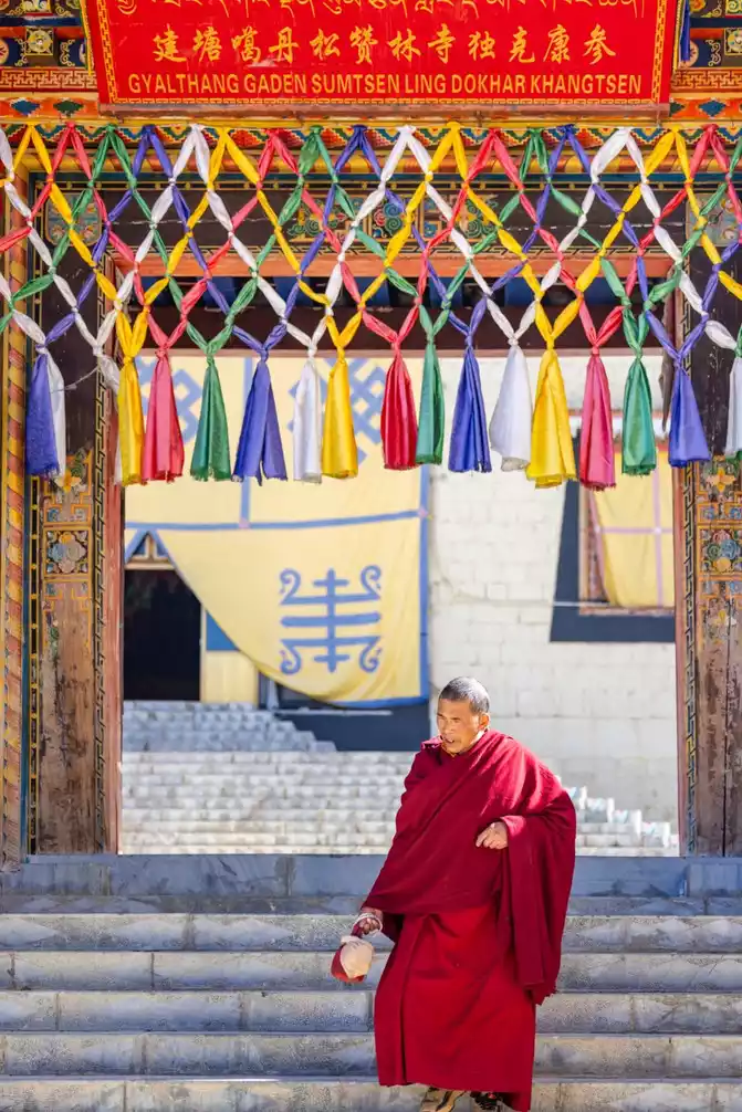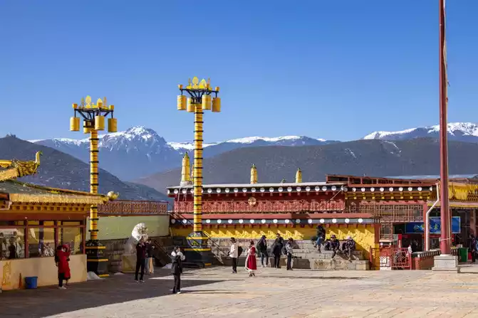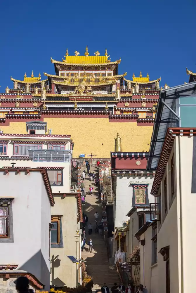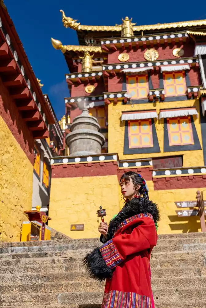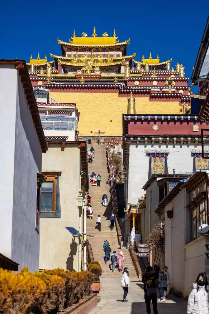 To respect local culture, photography in Tibetan clothing is limited to the square and outdoor buildings; photography is prohibited inside the temple. Songzanlin Temple is located at a high altitude, so bring water and snacks, and walk slowly and rest frequently.