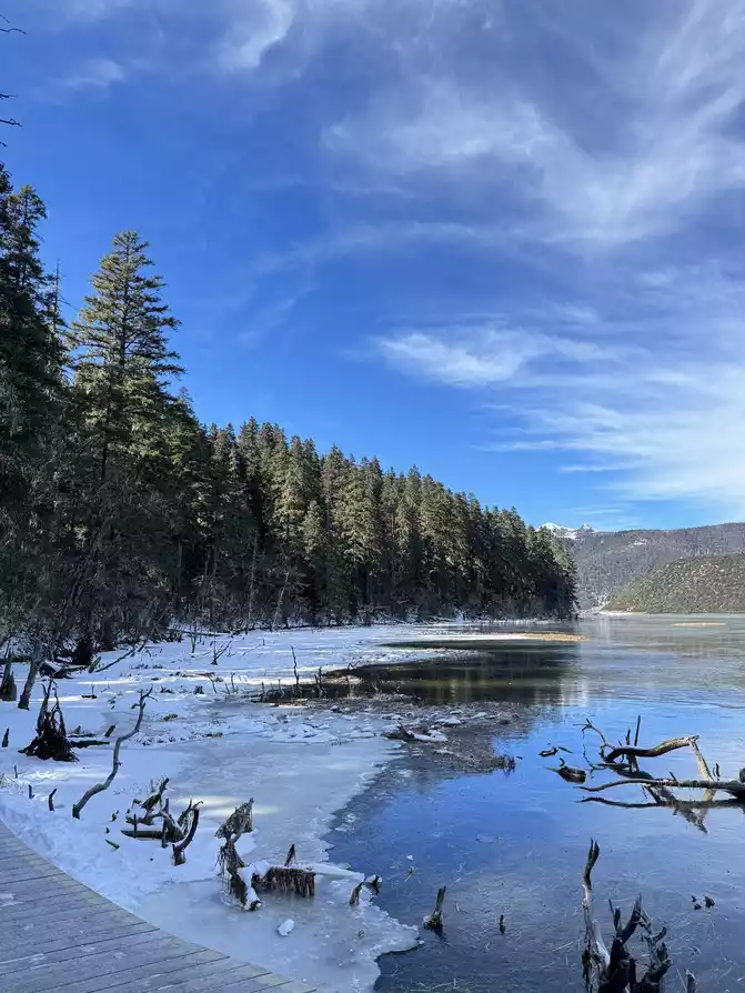 Pudacuo has two lakes: Shudu Lake and Bitahai Lake. We only visited Shudu Lake (they said the scenery is similar). The plank road around the lake is 3.3 kilometers long, and walking around the plateau is quite tiring. The scenery is stunning and well worth the price of admission.