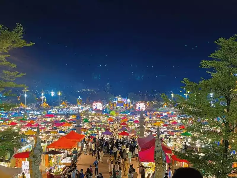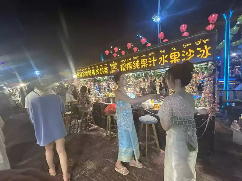 After a day of sightseeing, you'll definitely stay near Gaozhuang, where you'll find the Xingguang Night Market, Xishuangbanna's largest night market.