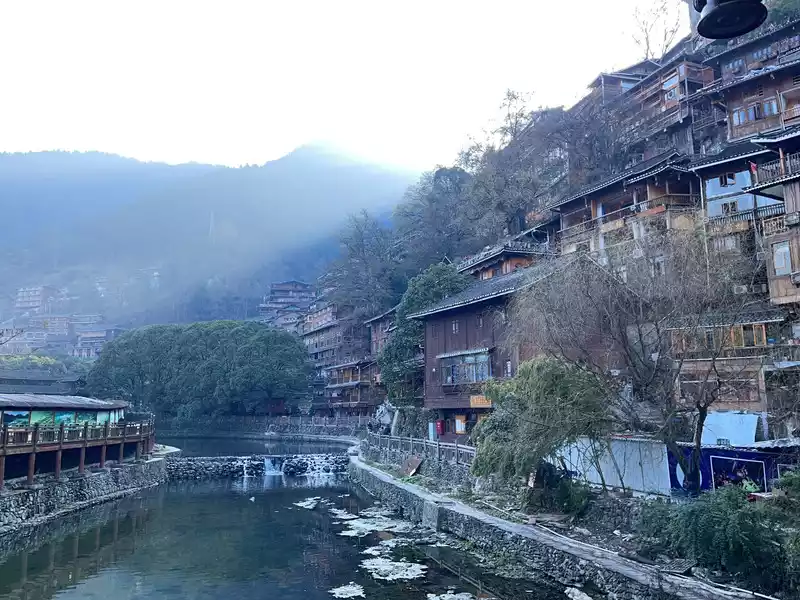We circled along the lake and reached the primeval forest on the opposite side. The vegetation here is lush, and the trees must be very old and thick, some covered in moss. The shapes of the trees vary, some straight, others twisting and turning. It's recommended to walk slowly here, as you might feel unwell, as this is a plateau. After a long walk, we returned to where we'd left our belongings, only to find that the pigs and cows had completely eaten them, leaving nothing behind. We were both amused and angry, so we packed up and headed home. There's also accommodation below the Bottomless Lake Scenic Area. Surrounded by a stream, the wooden houses are very comfortable and worth a visit if you have more time. There's a restaurant next to the accommodation, and the proprietress is a local, very talkative and friendly. Because we were in a hurry to get back to the city for dinner, we didn't eat there. We just poured a few glasses of water and left.