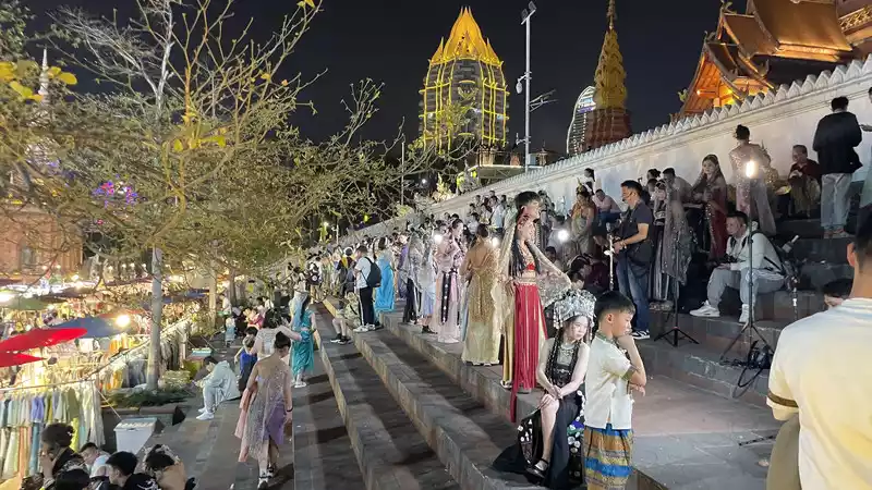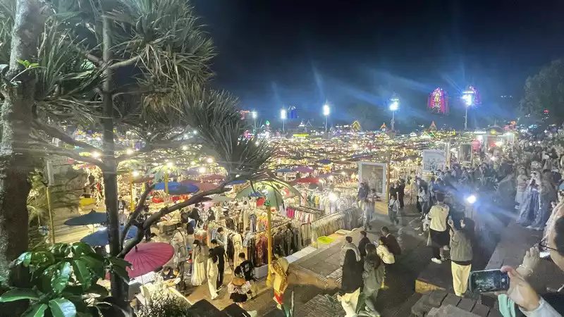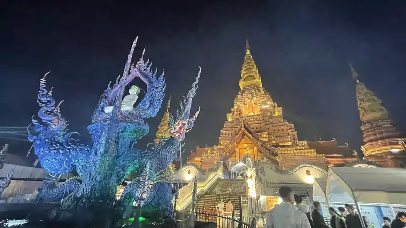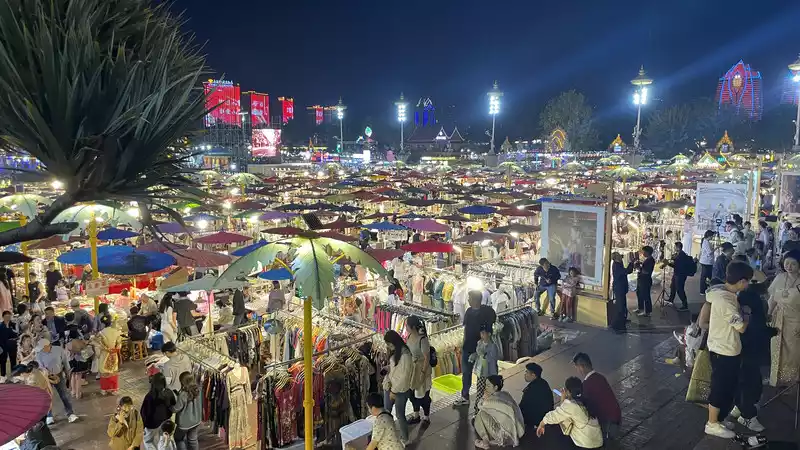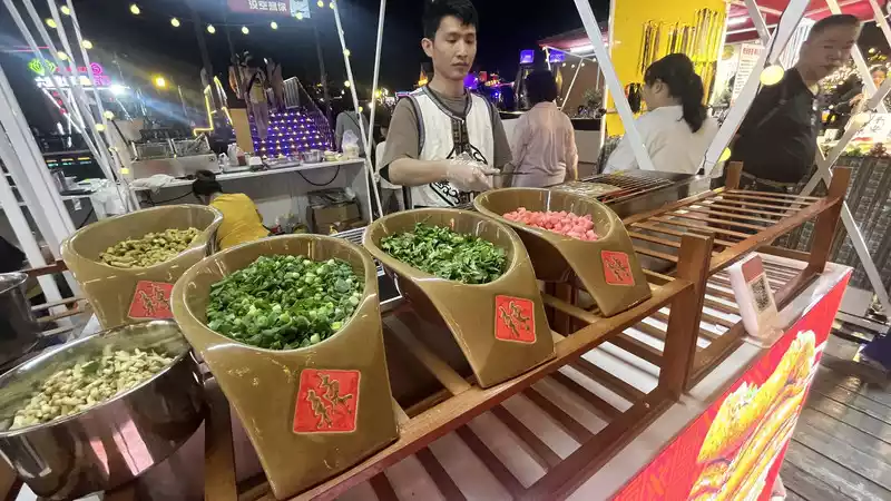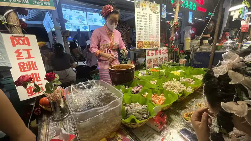 Xingguang Night Market: A must-see attraction, full of people taking photos, eating, and just hanging out. It's packed with people. It's the largest Northeastern night market in Xishuangbanna. It's a bit of an exaggeration to say half the people are from Northeast China, but it's definitely more than a third.