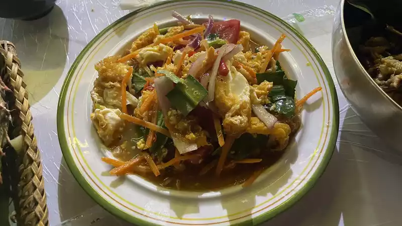 It's 258 per person, not cheap, and you can add 100 for a rainforest meal. It's all industrially prepared, with someone specializing in cooking, like lotus leaf rice and hand-pulled rice.