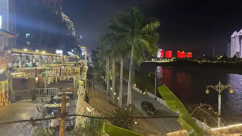 Mandou Village Night Market: Similar to Xingguang Night Market, it's a Northeastern night market, but a bit cheaper. You can walk down the alleys to the riverside, where you can stroll through the restaurants. We went to one called Dai Ah Dai, which was good. There are actually many restaurants nearby that should all be delicious. You can do your research. Go down the steps to the riverside trail, and you'll reach Xingguang Night Market.