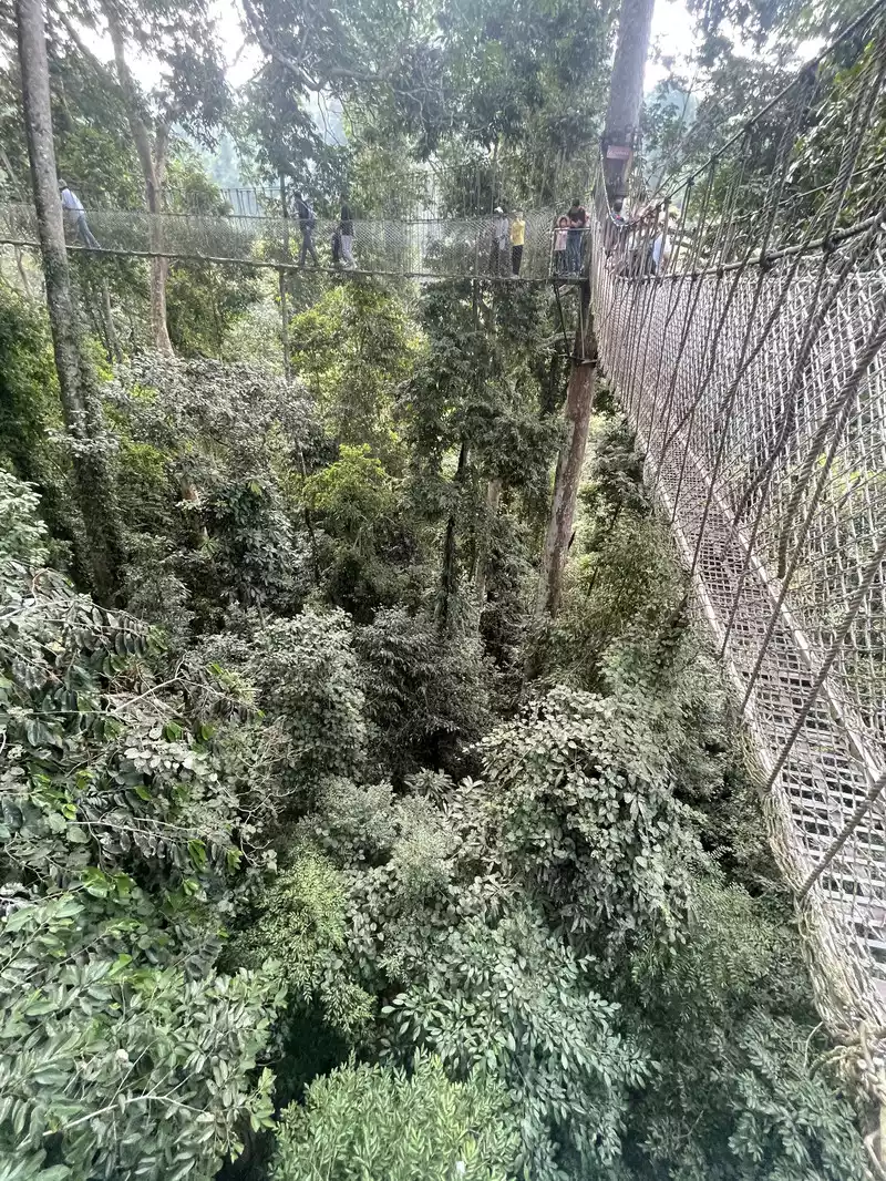 It was already the 28th day of the lunar year, and the purpose of avoiding peak traffic was precisely this: there were no people on the road. A few days later, it took three or four hours to get there. We arrived at Wangtianshu around 3 p.m., which was just right for a two- to three-hour visit. There were only people leaving, no one entering, so it wasn't crowded. The most famous attraction is the canopy walkway, which costs 120 yuan per person and takes at most half an hour. It's a one-way street, so if there were too many people, you probably wouldn't be able to take any photos. It's just a lonely experience. Besides the canopy walkway, there's also a walking trail inside, which I recommend taking for a longer walk, at most an hour. It feels like a rainforest, very refreshing, and the air is superb.