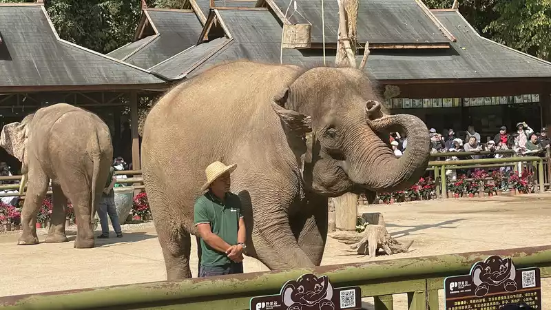 The recommended route for Wild Elephant Valley is to enter from the South Gate. As soon as you enter, you'll see an elephant show and a Dai folk performance. After the show, you can take a leisurely walk. There's a butterfly pavilion, which is quite fun. The butterflies will land on your hands, but some people pinch butterflies with broken wings, which is not authentic.