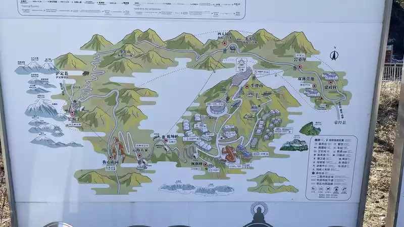Free electric cars are available at the main scenic area entrance at 8/9 am. You can enter from either the east gate or the north gate and exit from the other one. You don't have to go back the same way. Private cars are not allowed to enter. There is also a Buddhist capital scenic area next to it, which you can go to or not.