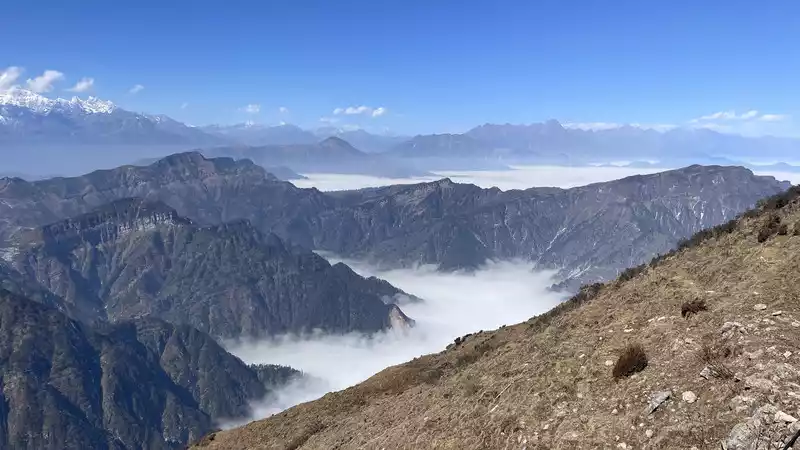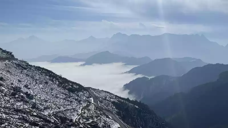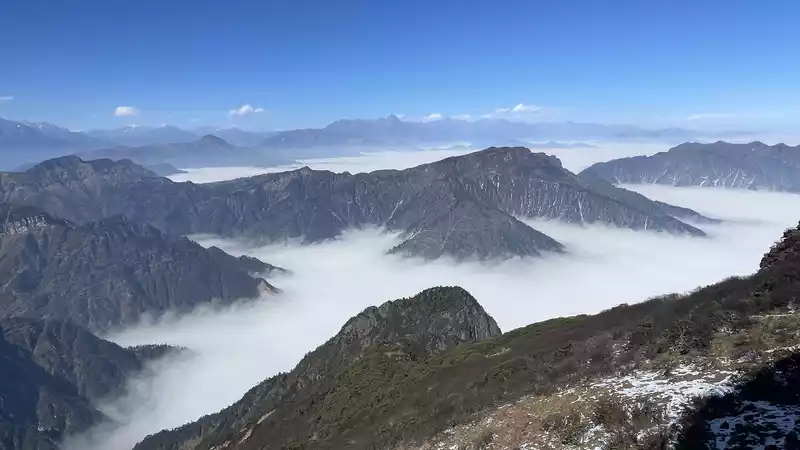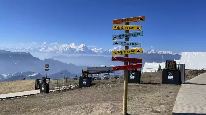From the top of the mountain, you can see Mount Emei and Mount Siguniang, but they are quite far away. Mount Gongga is quite clear. It is recommended to go up the mountain early, as fog will rise in the afternoon and block the view of Mount Gongga.