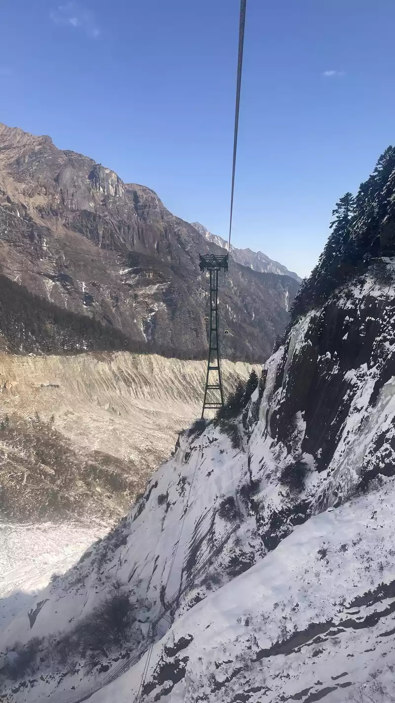 The walking trail is not open, so you can only take the cable car in winter. To be honest, the cable car is not cheap, but it is a round trip, a small loop on the top of the mountain. The climb is not difficult. You can see the glacier and, if you are lucky, an avalanche.