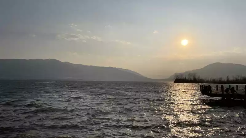 We went to Fuxian Lake early in the morning. The crowds of tourists for the New Year holiday hadn't left yet, so it was quiet.