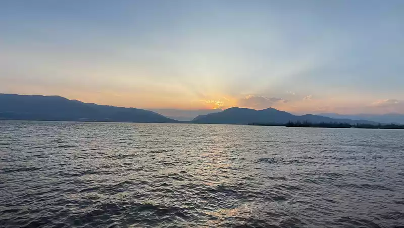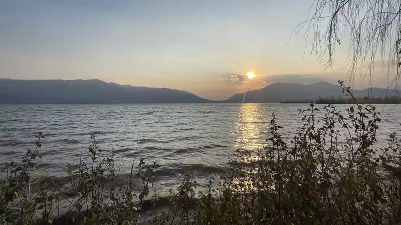 We arrived at Qionghai in Xichang. This city has amazing resources. We had just enough time to circle the sea and head east to the Moon Bay Scenic Area to catch a sunset over Qionghai.