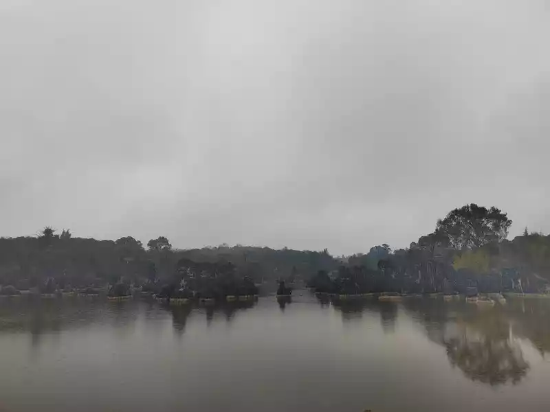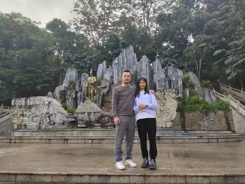 I didn't have any plans this morning, so I wanted to catch up on some sleep. I didn't expect to get up so early and still make it in time for breakfast! Before leaving this morning, Tutu pulled on some cotton pants. Apparently, it was too cold to take off her down jacket after getting off the plane. The tofu pudding is recommended! Afterward, the lady served her white fungus soup and hot cocoa (⊙﹏⊙). So full! We rented a car and set off! Our first stop was the Yunnan Ethnic Village. It was raining and quite cold, and they say we caught the coldest days in Kunming! We shared an electric scooter with someone to get into the park, which was 171cm long. It was raining, so we really didn't feel like strolling around!