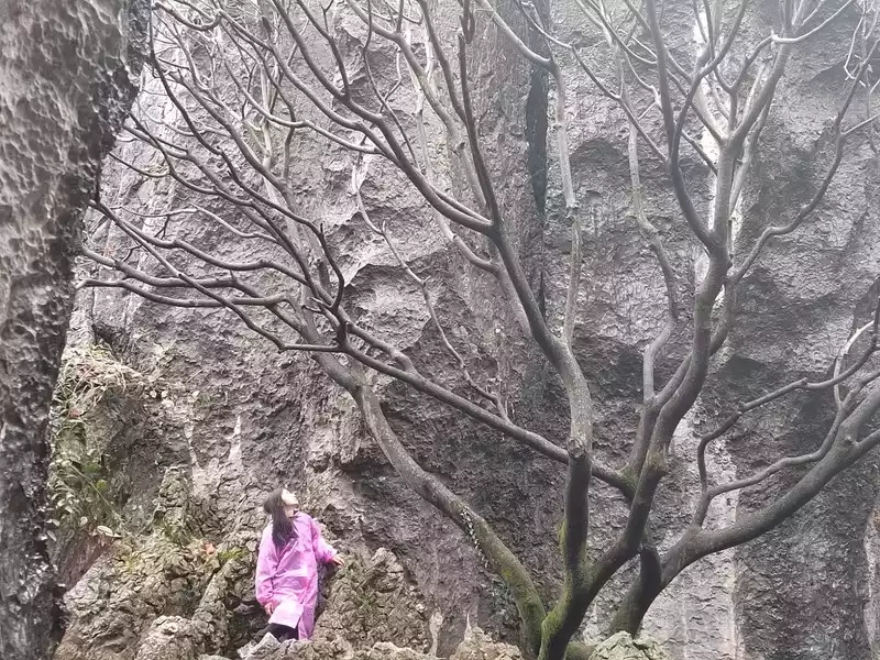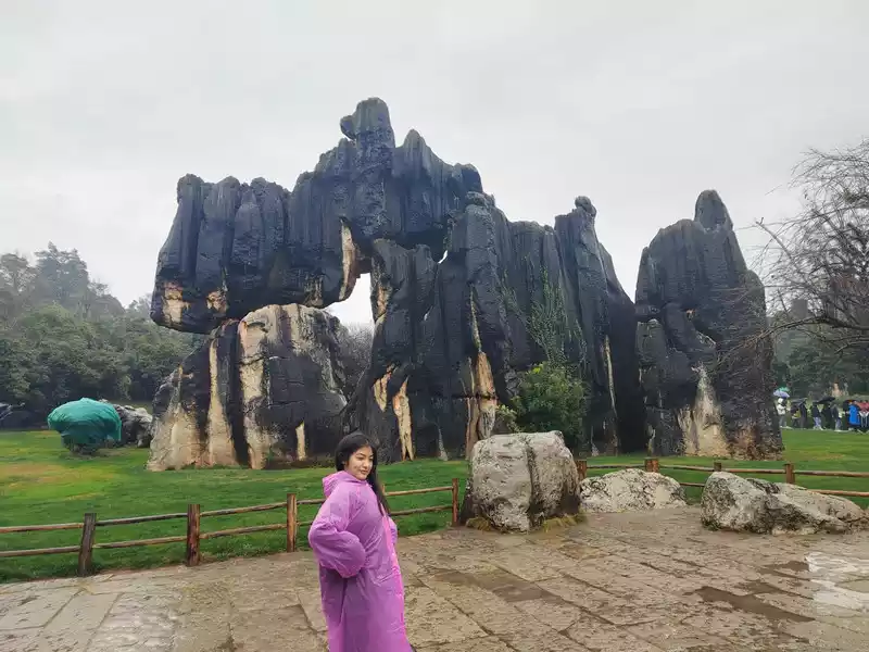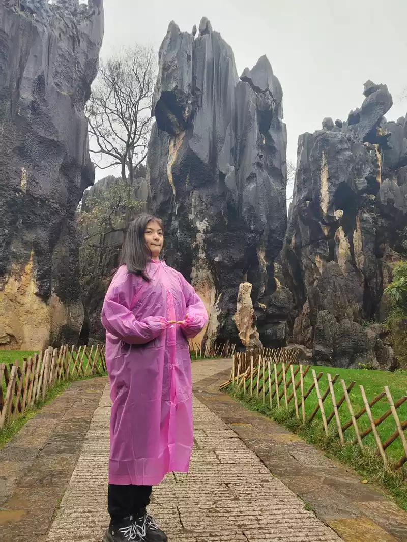 Packed my luggage and checked out to go to Banna. It was too cold! Breakfast is still Hilton’s sweet love for customers! Today it was white chocolate! It took us nearly two hours to reach the Stone Forest Scenic Area. It's so far! China-TravelNote had stopped selling same-day tickets, and I was worried it would be a wasted trip. So I bought my ticket directly at the ticket office. I even bought a pink raincoat! It's as famous as Wulong, but I personally prefer Wulong!