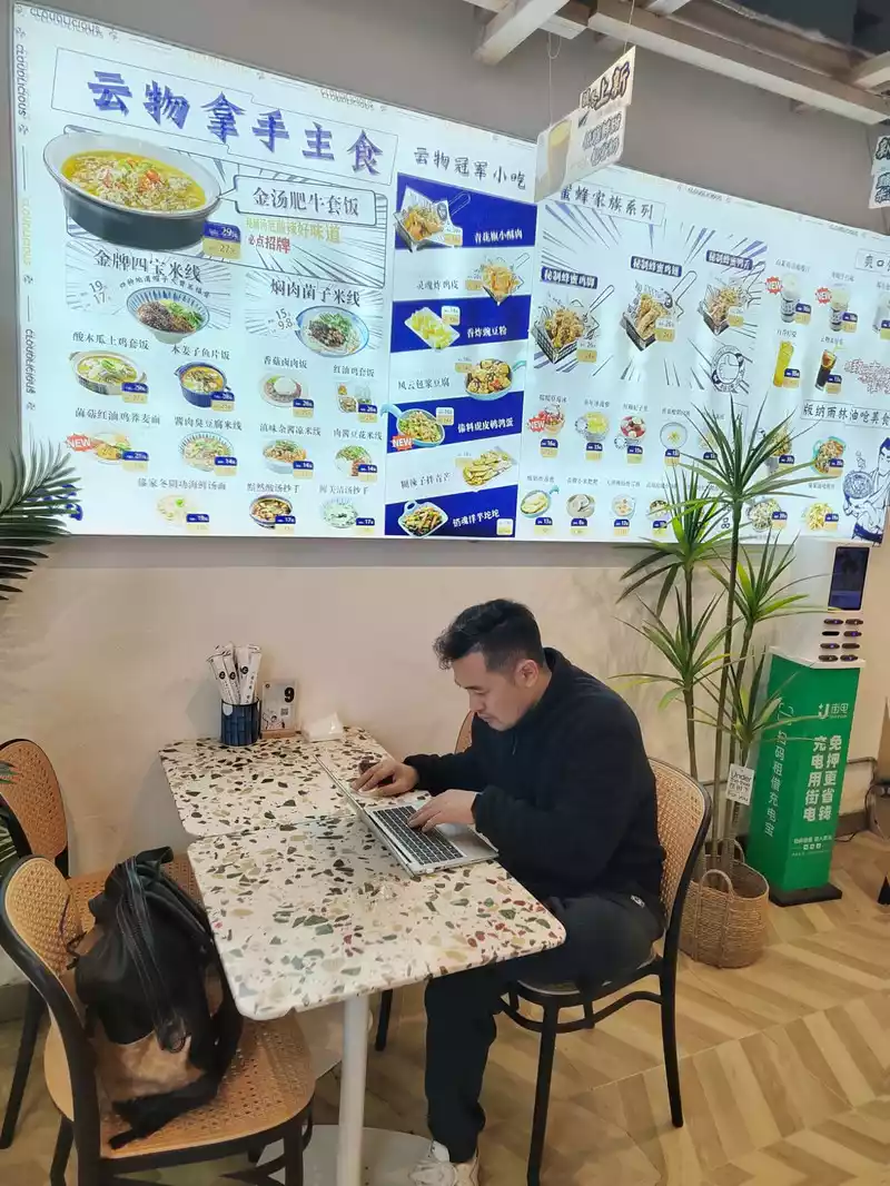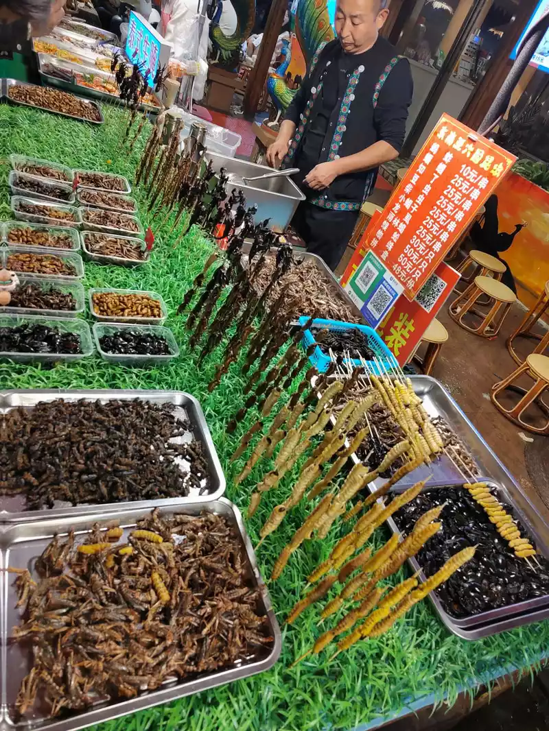 After returning from Shilin, I found a Shaxian snack bar near Kunming South Railway Station. The food was delicious. After lunch, I returned to the station and took the intercity bus. It took 3 hours to get to Banna! It was drizzling when I got in the online taxi. The driver, a man from Northeast China, was very friendly and chatty. He told me that the rain would stop soon and we could go to the night market later! Gaozhuang was extremely congested, and the streets were narrow and crowded! When we were stuck in traffic, the driver told us to look at the densely packed swallows on the electric poles on the street, which is the characteristic of that street!