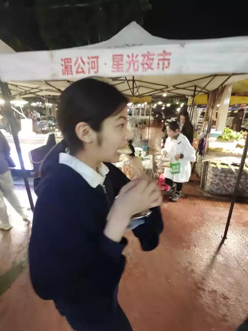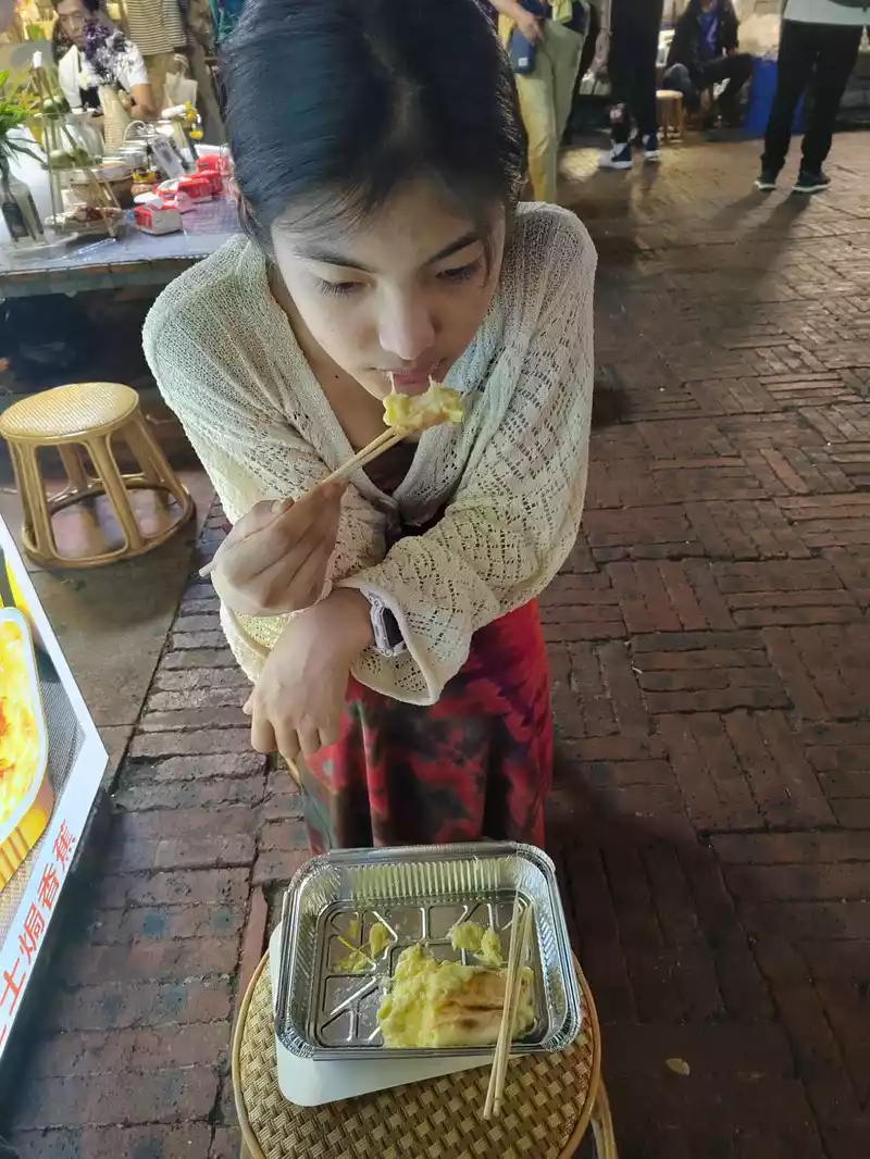 In the evening, we went to the Xingguang Night Market, but the mission was not yet completed! After a 20-minute walk, we saw a real estate agent setting up a stall on the roadside. I asked casually, and Mr. Bi was scared, hehe! The tofu with glaze that Mr. Bi bought for me was nice!! I have to advertise Tutu’s favorite! Tutu bought this outfit during Xia Xia’s Summer Fantasy Season for over 300 yuan! My dad and I both love her Miao handmade clothes, and you can get a whole set for under 1,000 yuan. But Tutu couldn’t stop laughing when she put them on, so we saved money! My dad disliked the high slit of the skirt I bought, so we bought a cape to cover it! The cape cost 40 yuan! My bargaining results! Tutu bought the clothes for tomorrow’s photo shoot for 100 yuan and the shoes for 30 yuan! Someone despised my bargaining skills, saying they are not as good as men’s!