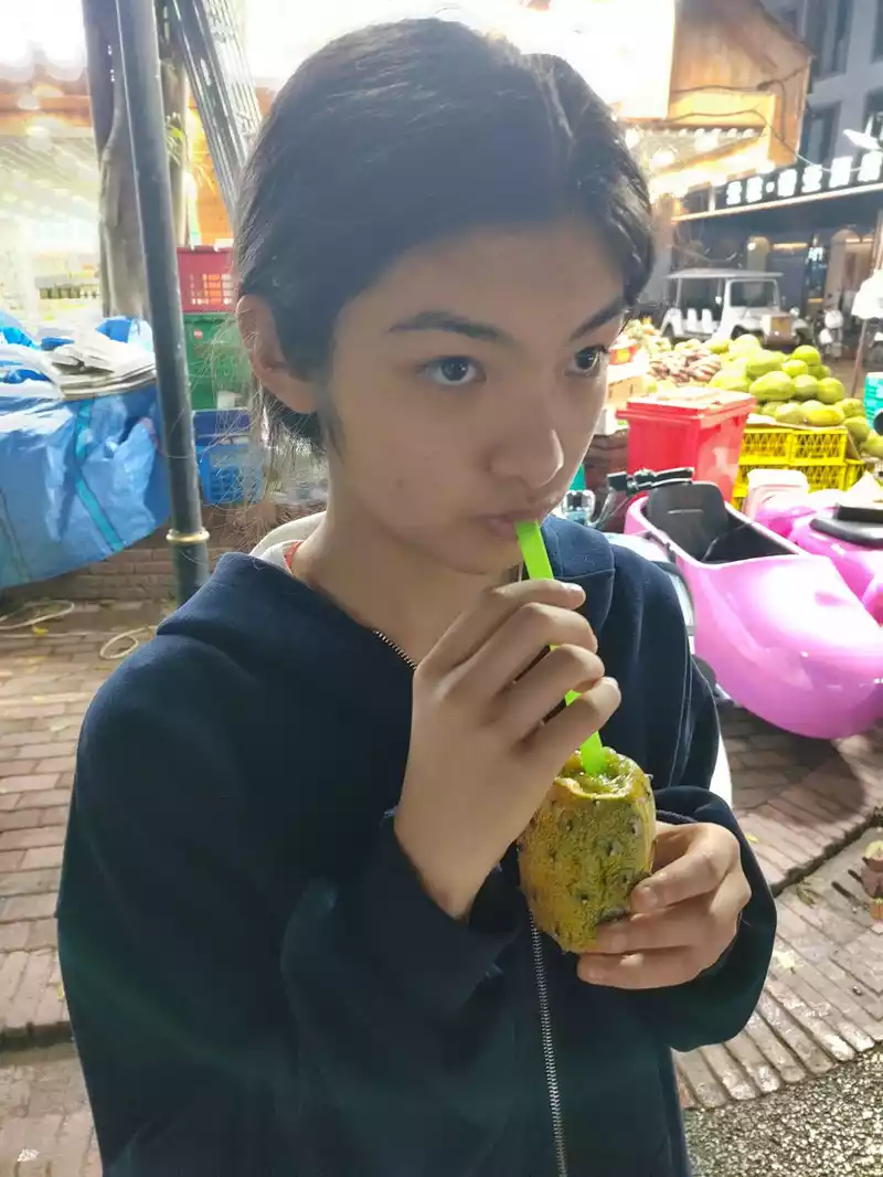 We were so crowded that we had to rush out. Only after we got out did I remember to buy a skirt for me. I found out that princess costumes can only be rented at a photo studio or with a photo package. They didn't sell them. They did sell Dai costumes, but after visiting several stores, they were all similar. I was overwhelmed and couldn't find anything I wanted. I decided to go after dinner! Mengziyuan Cross-Bridge Rice Noodles, delicious! I went to the fruit store to buy fruit, but many of the fruits were disappointing... I bought one to try, and only bought more if it tasted good!