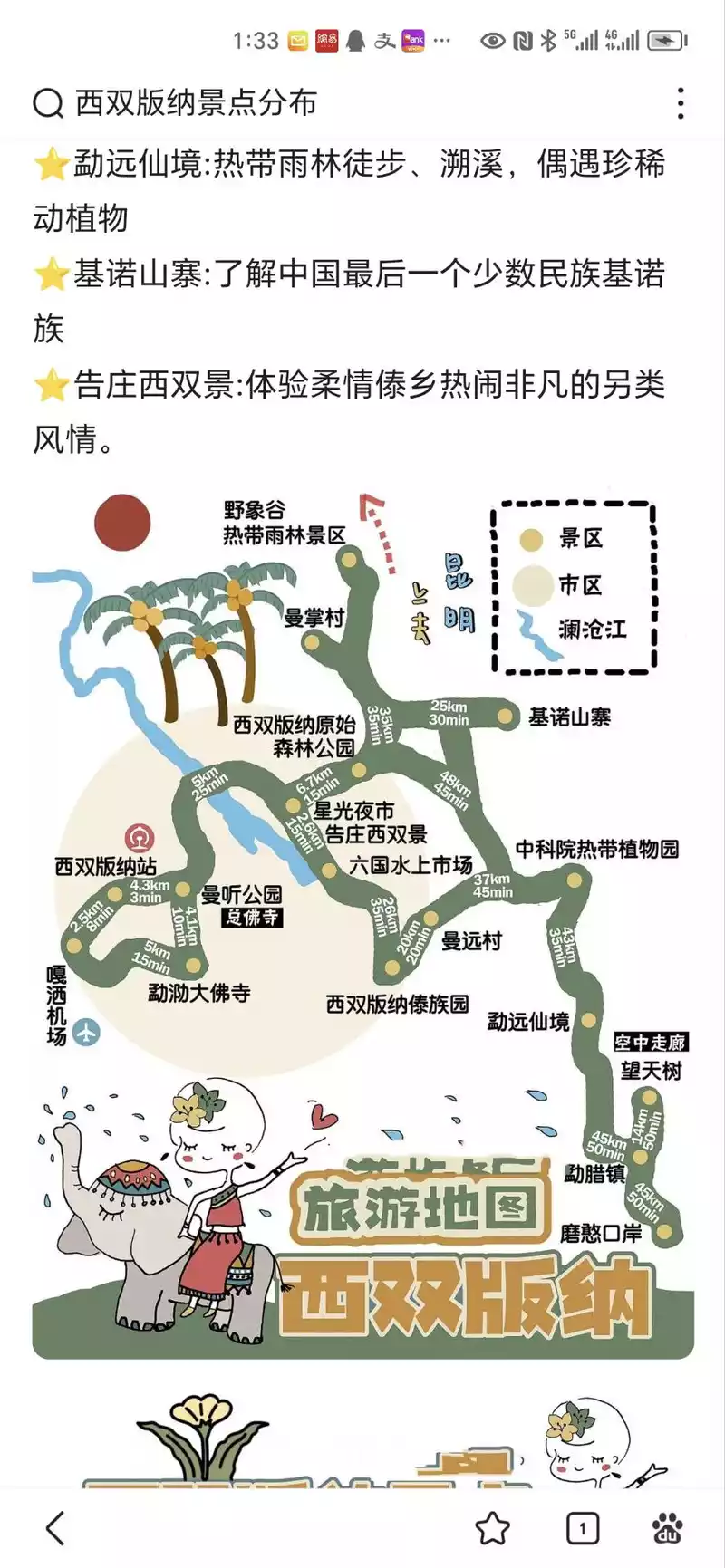 I got up this morning and packed my bags to move, but when I checked, I couldn’t find the hotel I wanted to stay in for the next two days! Let’s go to Wangtianshu first! After booking the Faustiano Hotel in Mengla, I rented a hybrid car. Charging is not very convenient in Banna. I can watch anime on the passenger seat, and Tutu is watching Conan on the passenger seat. I can finally escape the clutches of Banna ( ̄︶ ̄)↗! The distribution map of Banna scenic spots, which I found online, is quite vivid!