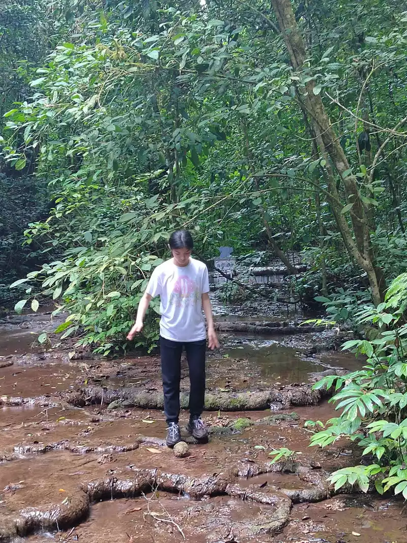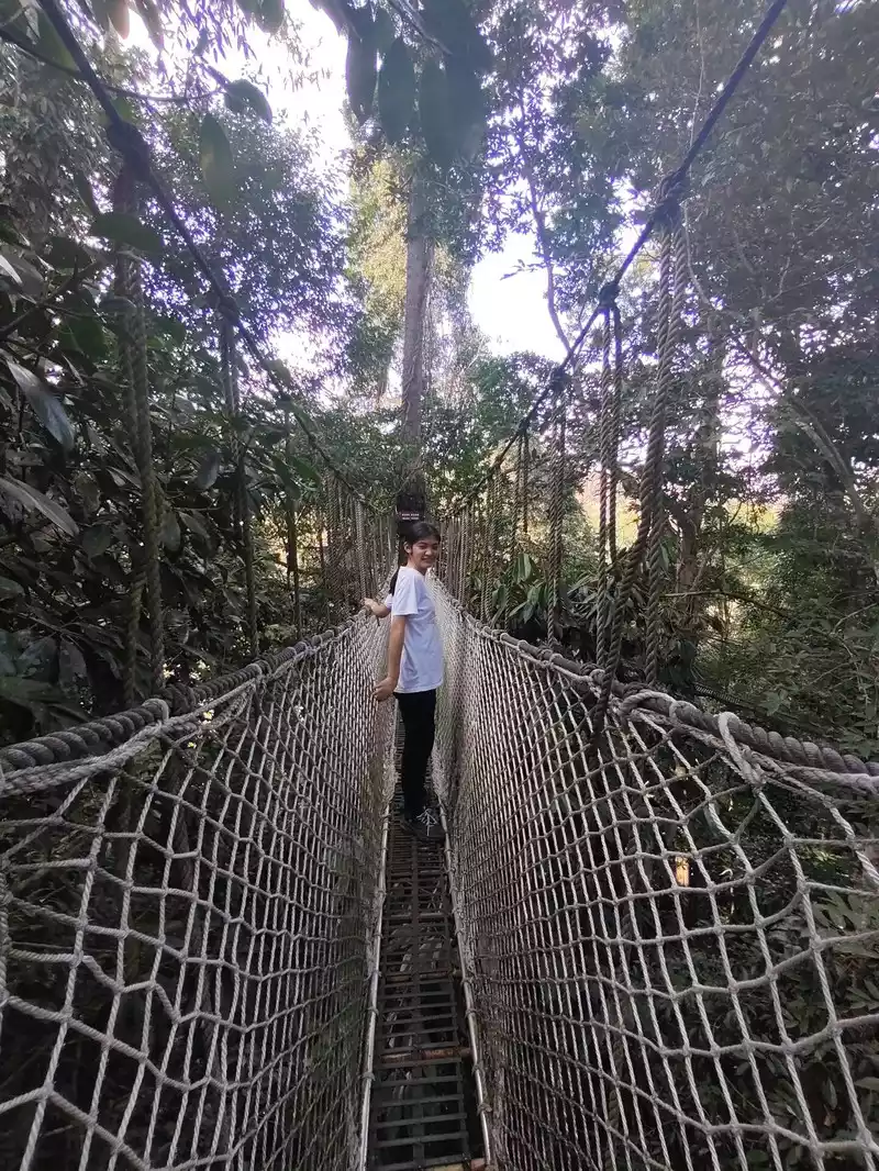 Looking down from the canopy corridor, I couldn't see the bottom. After looking down, I felt dizzy and my legs went weak (⊙﹏⊙). In front of me were kindergarten children studying. They walked very slowly and were blocking the corridor. They were not very friendly to tall people. In some sections, the rope was shorter. It was at my hip bone and I felt like I could fall down at any timeε(┬┬﹏┬┬)3! Bunny was jumping in front of me and laughing at me, but of course she knew to steady me and shake me. The aunt in front of Bunny was wearing awesome stilettos. After coming down, I felt like I didn't need to go on the jungle trek anymore! Bunny was not satisfied and wanted to walk again, but unfortunately we didn't have enough time and the glass plank road was not open, so we had to rush down the mountain to catch the car. There were no boats, only buses!