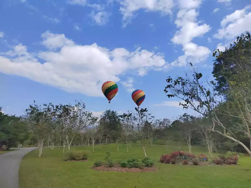 The Botanical Garden is well worth a visit. Just buy the ticket and bus for the west section. The other section isn't worth seeing. It's important to follow the guide; the explanations are fascinating. Just be careful not to touch anything; there are lots of poisonous plants! By the time I took out my phone while taking photos of the hot air balloons from the car, the best spot for photos had already passed! (ノへ ̄、)
