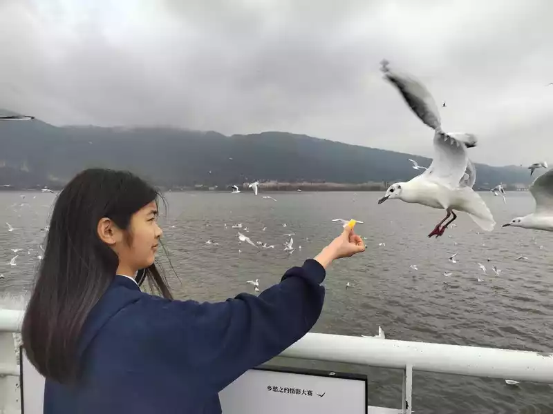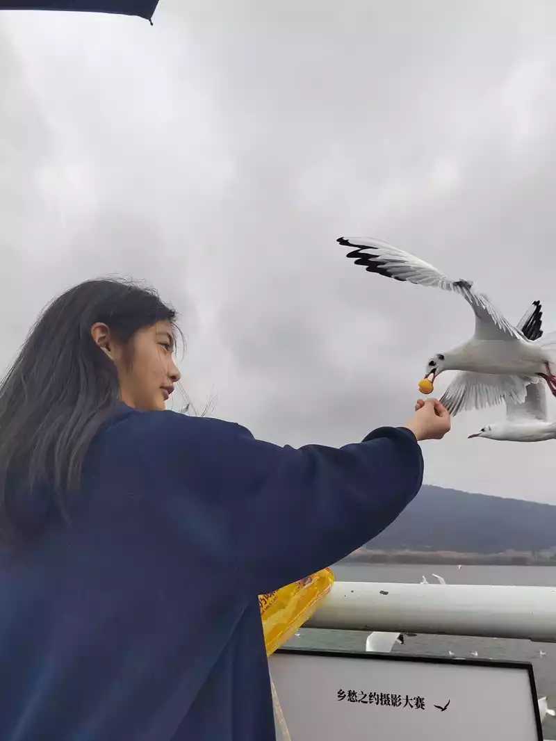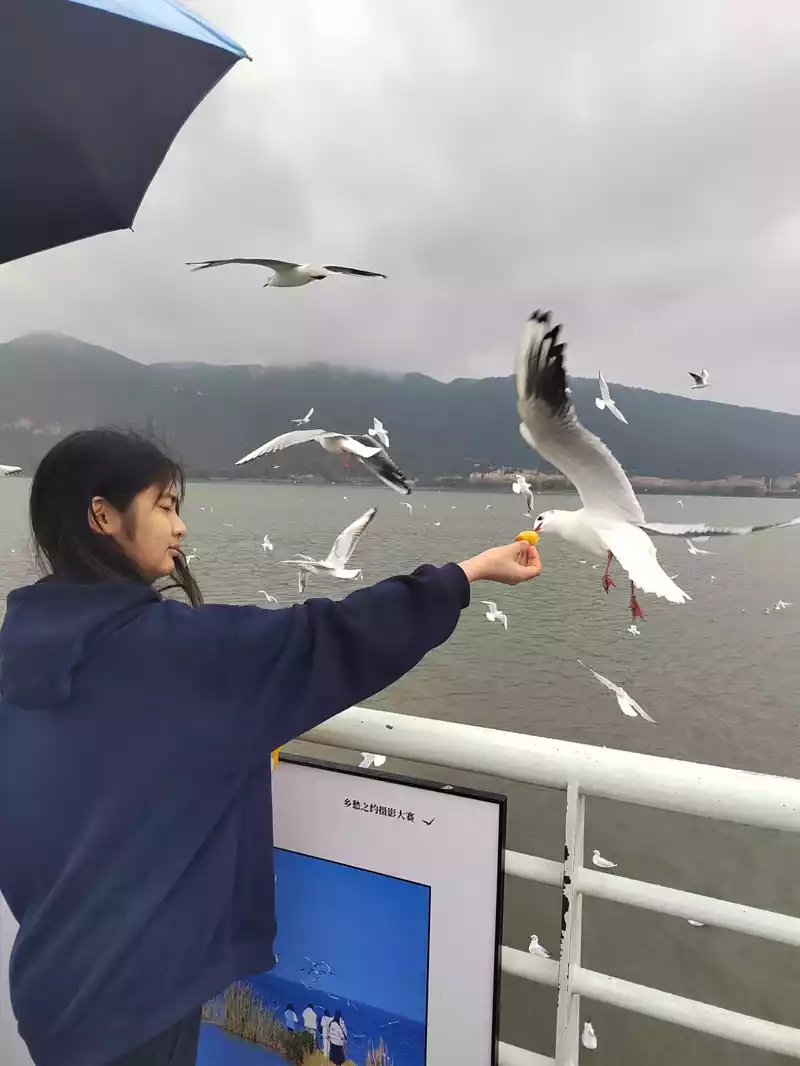 This afternoon, we stopped at the Haigeng Dam at Dianchi Lake. There was a place selling banana-flavored small bread for 15 yuan per 3 bags. They were cheaper on the street than on the dam! I was feeding the rabbits, and occasionally I would sip on some, saying they were quite delicious! As a photographer, I was a little lazy and didn't take a good picture (●'◡'●), so the bread was gone in no time.