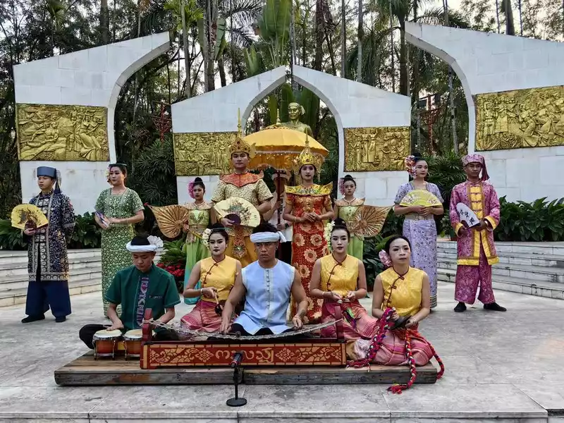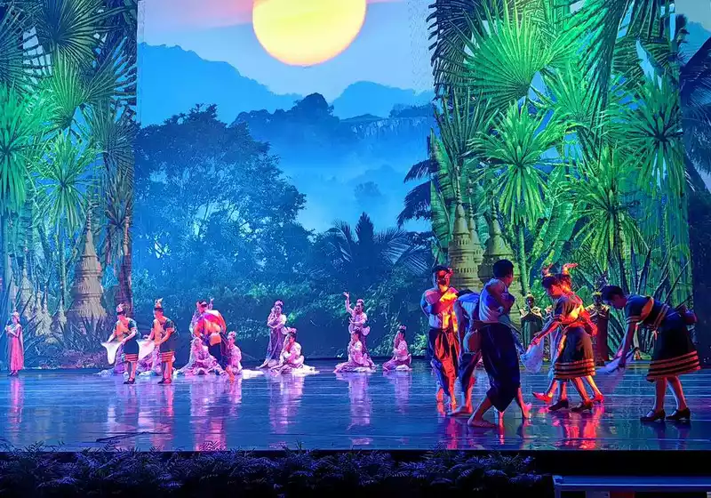 Golden Peacock Night·Mengbala Naxi is a large-scale tourism song and dance evening show with the theme of Banna ethnic customs. The whole show is divided into five acts: Chapter 1 "Banna Charm", Chapter 2 "Peacock Blessing", Chapter 3 "Water Splashing Song", Chapter 4 "Holy Blessing" and Chapter 5 "A River of Spring Water". The Golden Peacock Night Mengbala Naxi song and dance performance is full of exotic charm, encompassing the various ethnic groups in Xishuangbanna and the five countries through which the Lancang River flows, integrating history and culture.