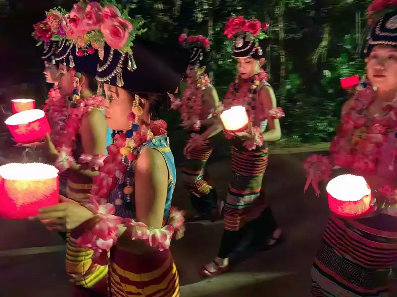 There will be a Dai buffet before the party, where you can enjoy a variety of local delicacies. The Mengbala Naxi Bonfire Evening took place at the performance theater in Manting Park.