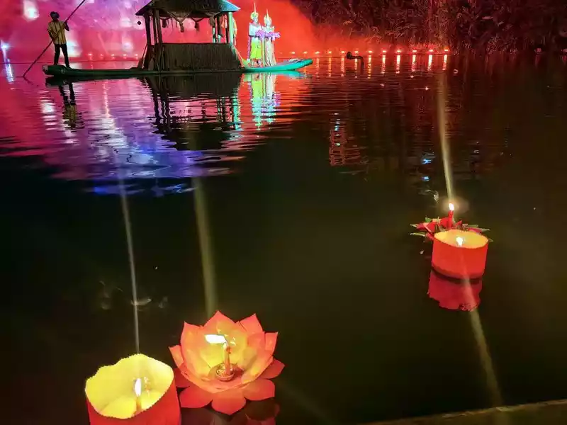 After the singing and dancing, it was time for the second part of the bonfire party - releasing river lanterns. After the river lanterns were released, the third part of the bonfire party began: the bonfire party in the square. Beautiful Dai girls and Hani boys, holding hands with tourists, danced around the bonfire, creating a revelry in a distant foreign land. After the river lanterns were released, the third part of the bonfire party began: the bonfire party in the square. Beautiful Dai girls and Hani boys, holding hands with tourists, danced around the bonfire, creating a revelry in a distant foreign land. Beautiful Dai girls and Hani boys, holding hands with tourists, danced around the bonfire, a revelry in a distant foreign land.