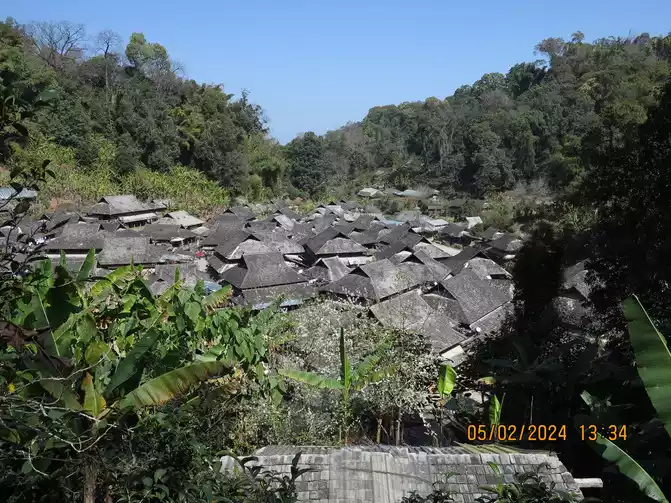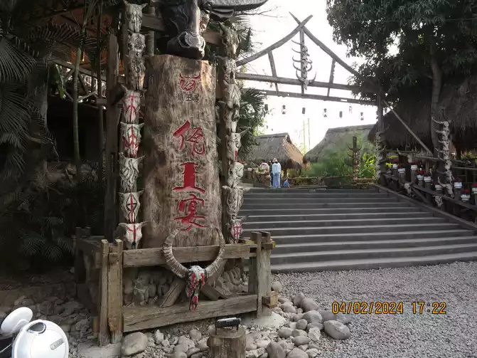 Leaving the rainforest, we drove back to Jinghong. It was still early, so we wandered around. For dinner, we went to the Wa King Banquet. There was a dirt road in front of the restaurant, and I thought I had taken the wrong turn. I only realized I had to find my way there when I got there. Fortunately, there were still seats available. After making a reservation, we went to the village on the roadside. Most of the business owners in the market were from Northeast China. We bought some fruit and had dinner. The Wa King Banquet is indeed a good business. Its main dish is donkey meat, but the taste was so-so. The main purpose is to experience the Wa customs. Guests are greeted with joy as soon as they enter the door. In the evening, there are toasts and bonfires. Anyway, it is very lively.