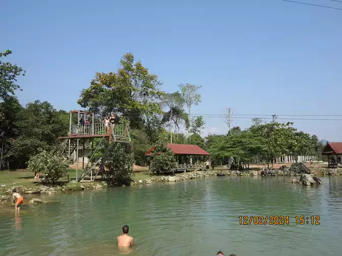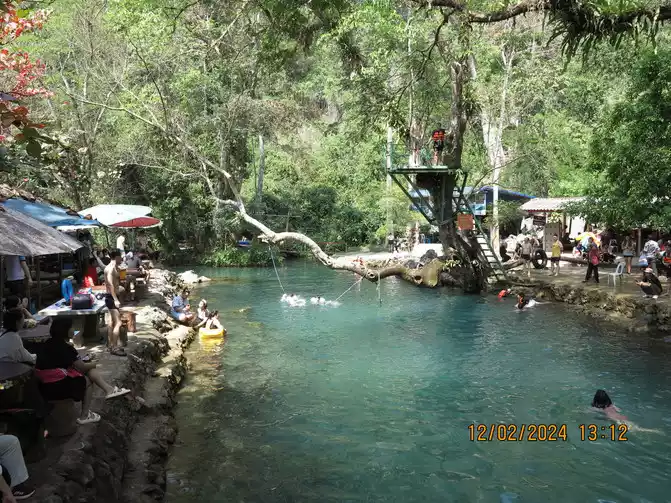 Entering the scenic area, we first visited the bear sanctuary. The vegetation was lush, and there didn't feel any particular protection. We soon reached the pool below the waterfall, a multi-tiered, beautifully clear pool. I had initially assumed foreign waterfalls were just like that, just a check-in. After all, we'd seen the karst landforms of Guizhou and Guangxi. I didn't expect this waterfall and the pool below to be so beautiful. It felt a bit like Huanglong, and the water quality was absolutely perfect. My mom was thrilled, and the surrounding rainforest was beautiful too. The pool is great for swimming, and the foreigners are quite unrestrained, diving and swimming, so I came prepared. The scenic area is fantastic for fun. We walked around and saw many people swimming in the three pools below. The waterfall isn't too big, but the drop is still pleasant.