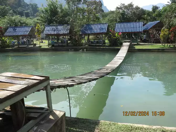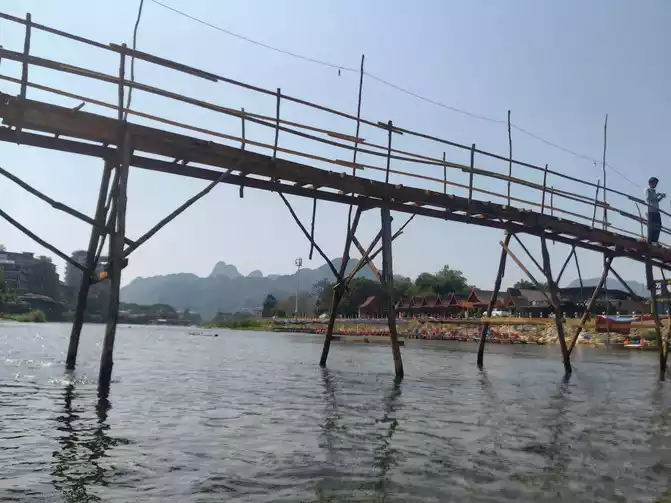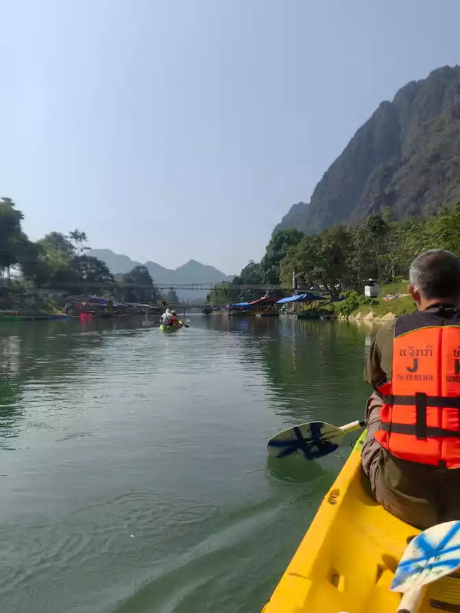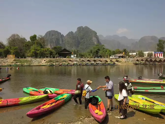 My wife and I took a boat and followed the guide to row along the Nansong River. The scenery on both sides is good, and the current is not too fast, but occasionally there are rapids in the shoal. It is relatively safe with the guide, and I also saw someone capsize and fall into the water. Everything is very happy. The whole journey is 5 kilometers. Look at the scenery and paddle slowly. It is not too tiring. The mother and the baby played the whole time and landed smoothly with the help of the guide. Not far from the shore is the kayak owner's shop, which is only a few hundred meters away from the hotel. I gave the guide a tip of 100,000. The Thai guide was very happy. After walking around this rural town, there are several hotels in the town along the Nansong River that are quite good. We found a restaurant on the roadside and had lunch. We had seen the train before and had a lot of tickets left. We changed our reservation for the evening train to the afternoon so that we could go to Vientiane for dinner. After eating, we walked back to the hotel to pack our luggage. My wife took the baby to buy Korean fried chicken. There are too many Koreans here. There are chain Korean fried chicken restaurants on the street. They should be authentic. The fried chicken my wife bought was probably due to language communication problems. It was too spicy and exciting!