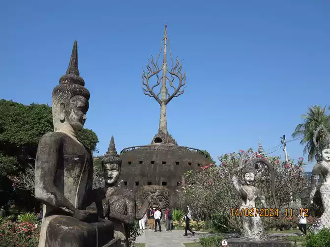 Day 11: Make breakfast by yourself early in the morning and go out after eating. The taxi app is very easy to use. The first stop was Xiangkun Temple (Buddha Park), which is one of Vientiane’s most visited attractions. We walked all the way along the Mekong River. Not far from Xiangkun Temple, we could pass the First Thai-Laos Friendship Bridge. I wanted to go to the checkpoint to have a look, but I gave up when I found that I had to turn to another road to cross the bridge to the customs. Now Thailand is visa-free for China.