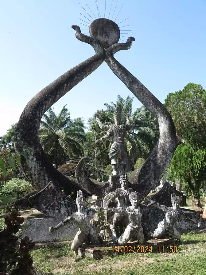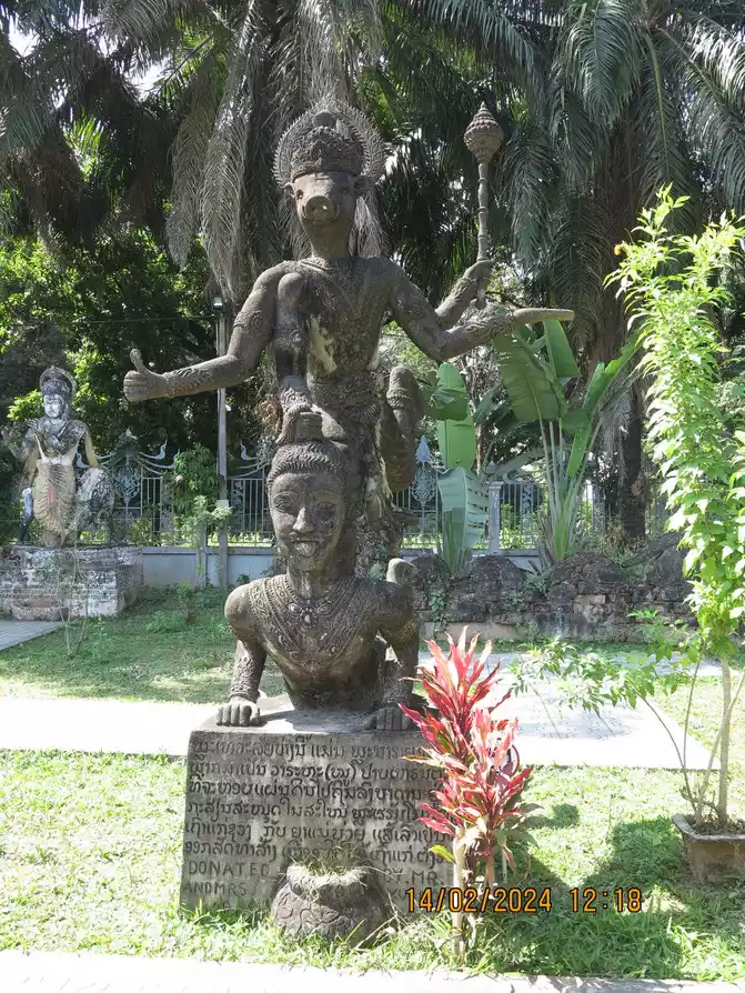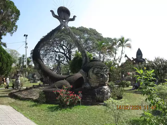 Xiangkun Temple is also called Buddha Park. It is located on the bank of the Mekong River. It is actually a sculpture park. There are many tour groups here. The tickets are not expensive and there is a Chinese guide. All the Buddha statues in the garden are modern works of concrete, and Xiangkun Temple is also known as "a miracle created by concrete." But by looking at the introduction here, you can learn a lot about Lao Buddhism and Hinduism. Various great gods can be seen here, including Shiva, Vishnu, Arjuna, Avalokitesvara and all imaginable images of gods in Hinduism and Buddhism. These gods are very different from the gods and Buddhas in our domestic Buddhism, but they are still worth a visit.
